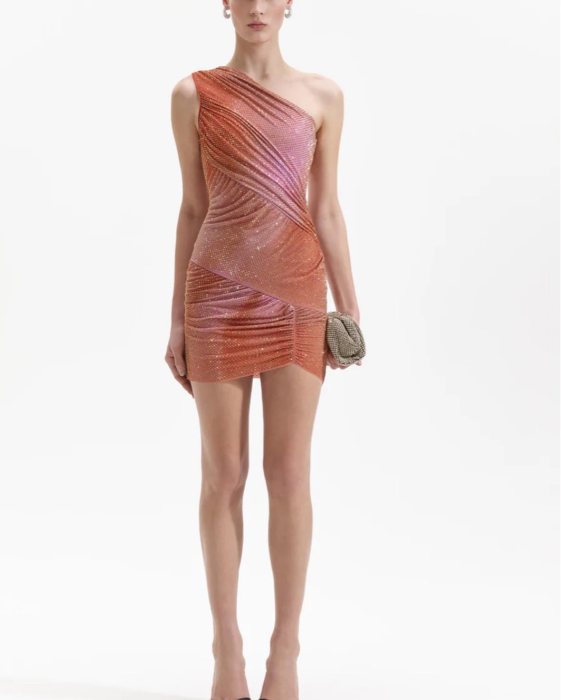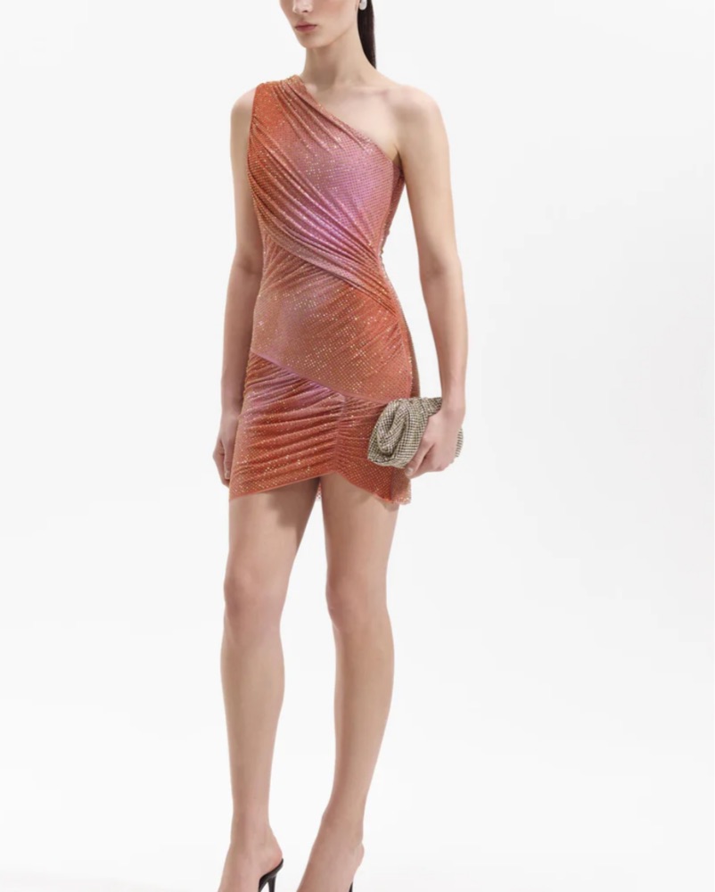 Self Portrait Orange Rhinestone Dress by Self Portrait - Pickle
