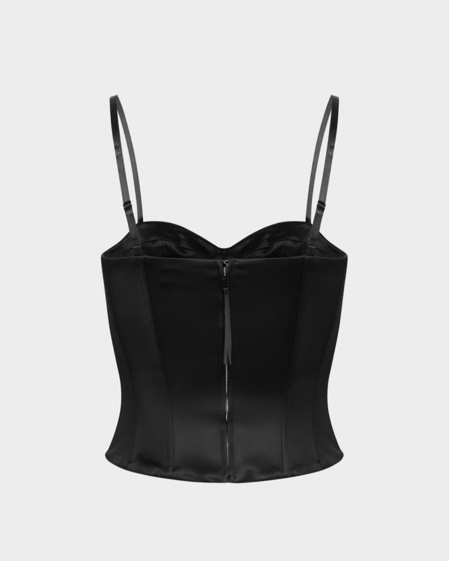 This is a lined bustier top with a sweetheart neckline, adjustable straps and princess seams for shaping.