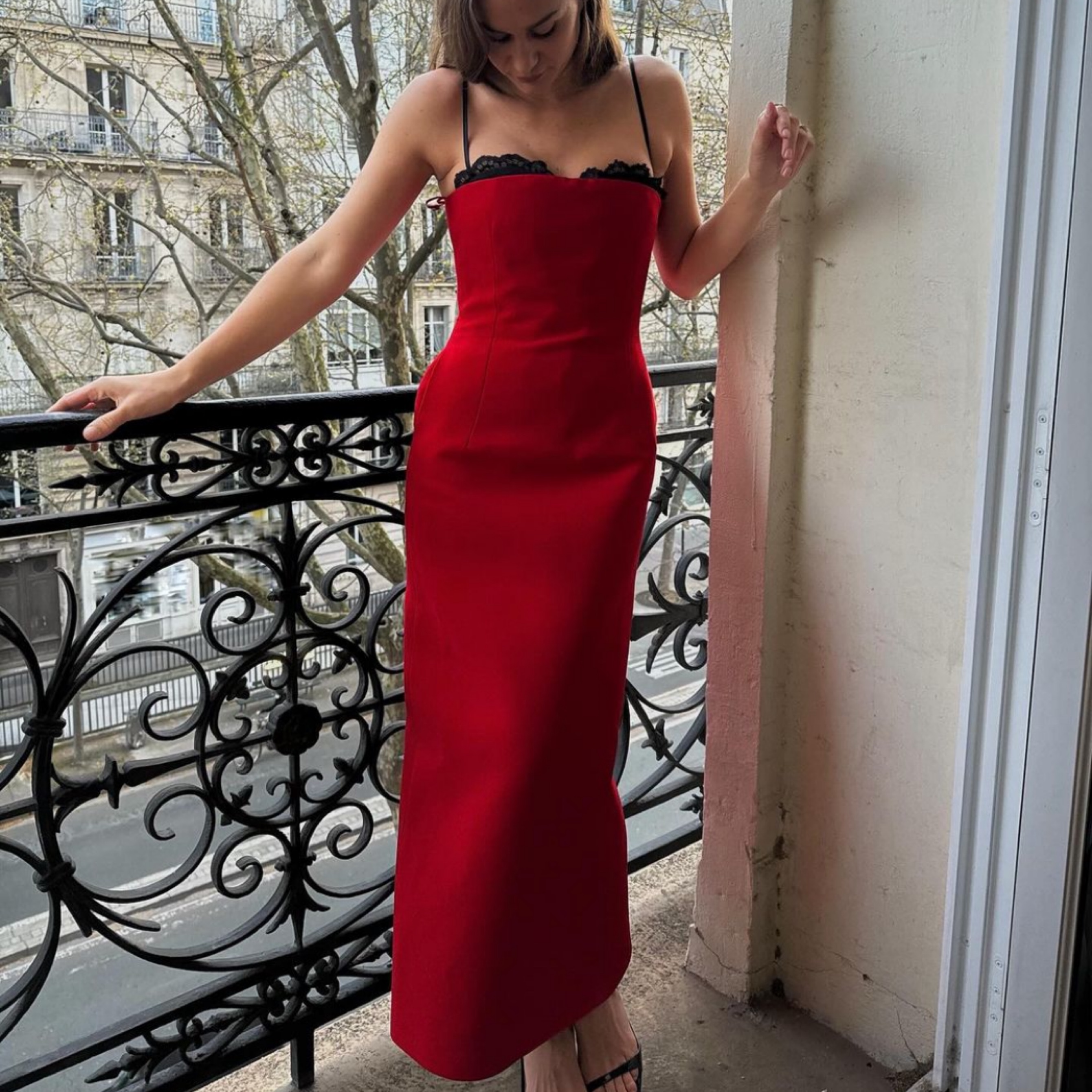 Only worn once to a black tie event. Please handle wirh care :) Size : FR 36/S. Bodice inside so incredibly flattering and built in bra. I am 5’4 and wearing it in the last photo. It falls exaclty on my ankles. Must be dry cleaned. Wedding guest dress. Formal dress. Black tie
