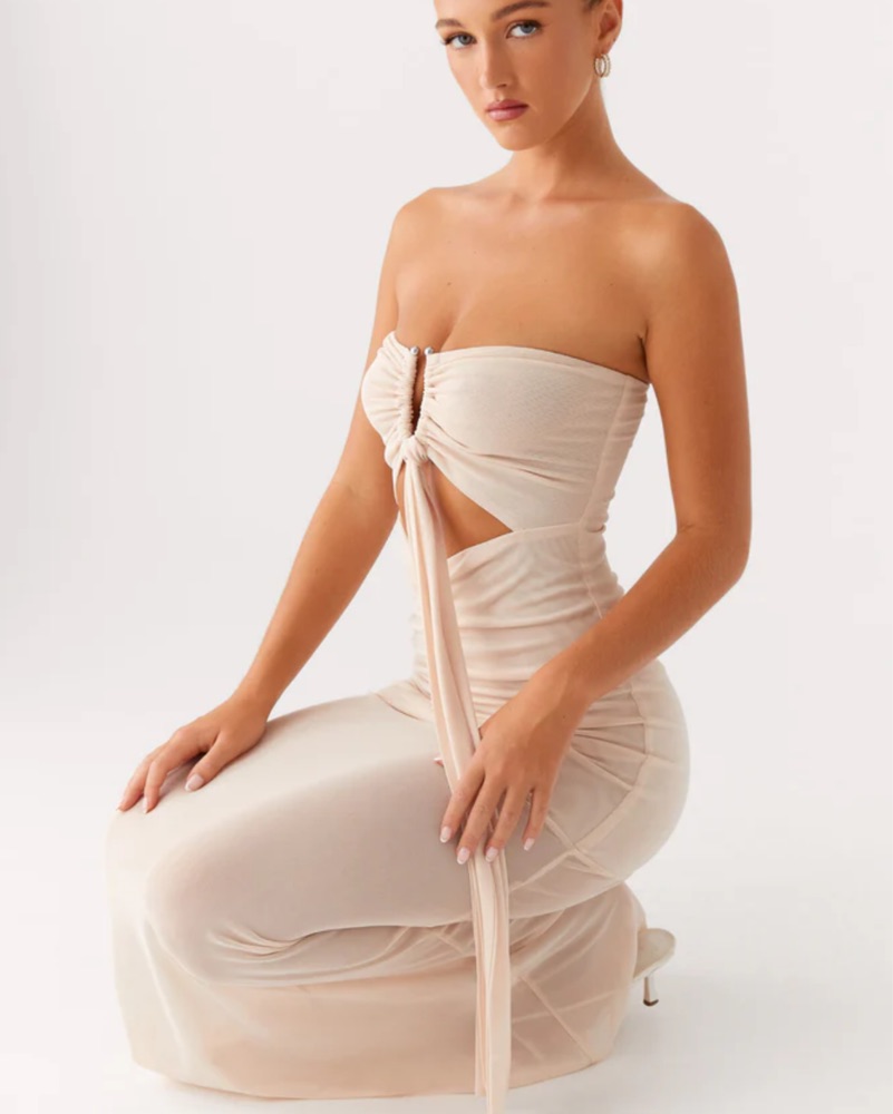 Elegant Ruched Strapless Gown by Peppermayo US - Pickle