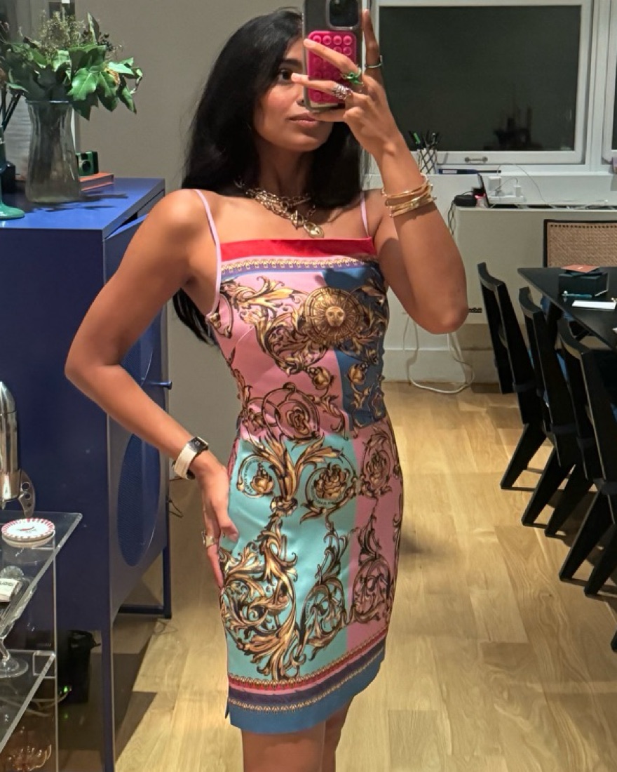 XS versace jeans dress - shift dress with adjustable straps. Figure hugging so fits XS or a small S. Its so fun and chic!!