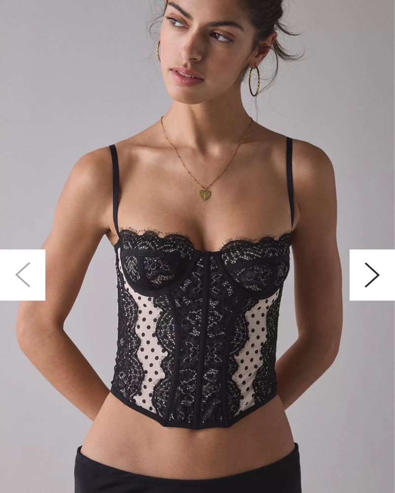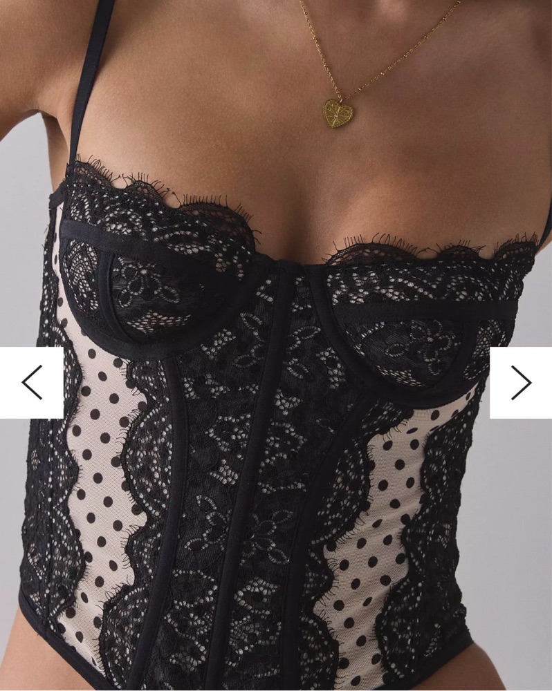 Elegant Polka Dot Lace Corset Top by Urban Outfitters - Pickle