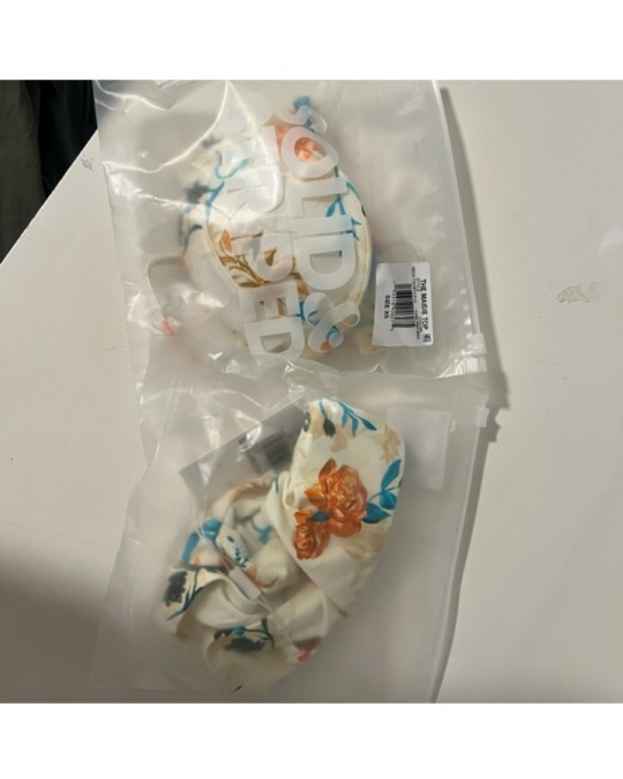 solid and striped maisie underwire bikini with high cut bottoms in white floral. new in packaging. originally $226. sold out online