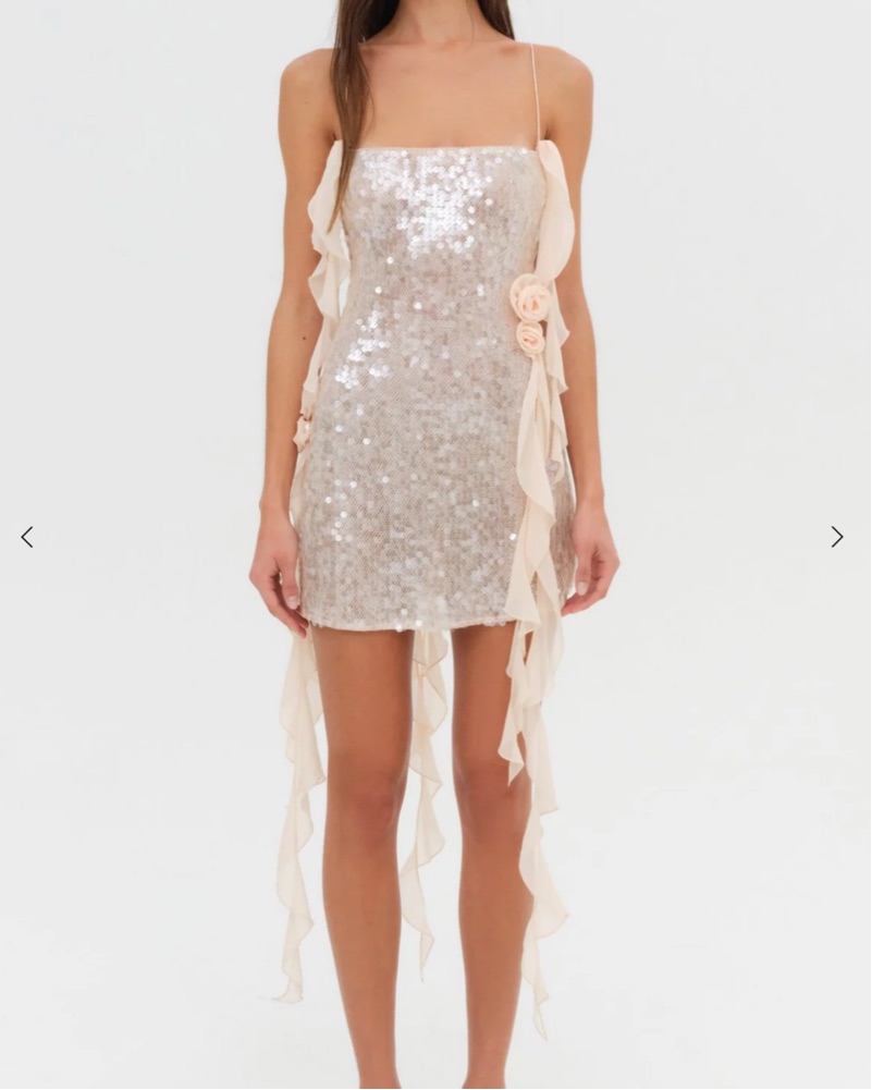 Such a cute little mini! Sheer, but not see through enough to have to wear something underneath. 🫶🏼 ***please do not borrow if you’ll be wearing self tanner, body oil, or are prone to spills! All long dresses must be worn with heels to keep from dragging! :)
