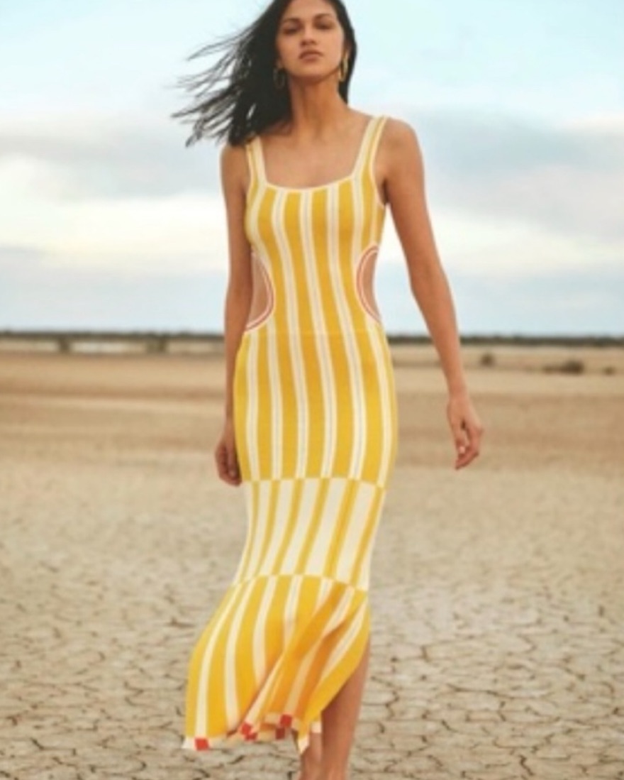 Yellow striped maxi gown with cut outs