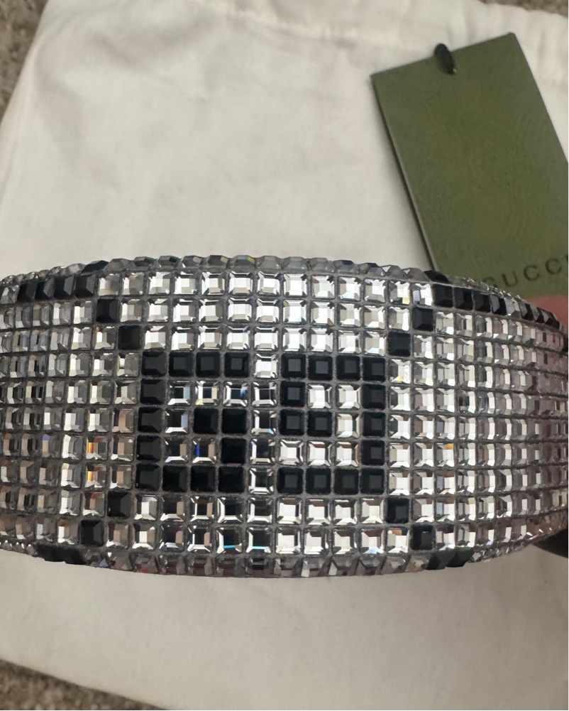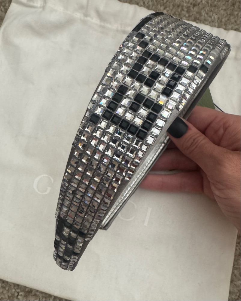 Elevate any ensemble with the rhinestone Gucci headband . Perfect for a glamorous night out or special occasion.