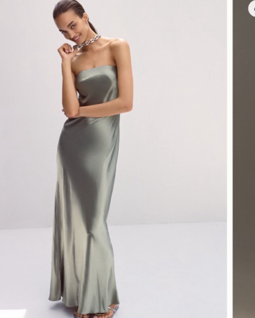 Strapless satin maxi slip dress