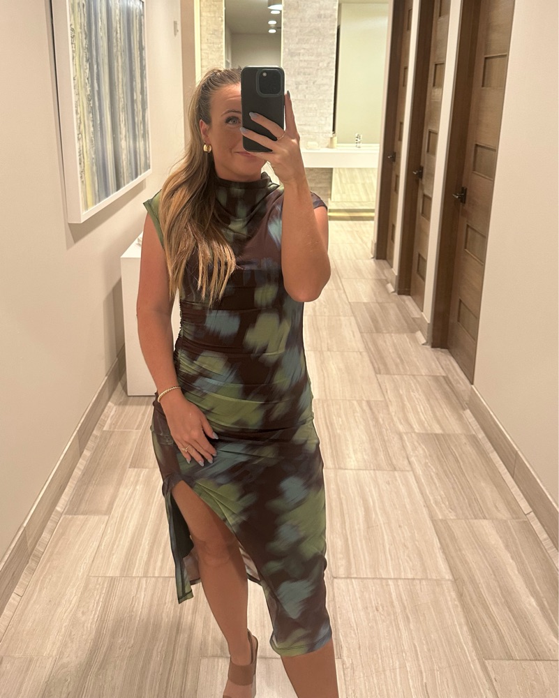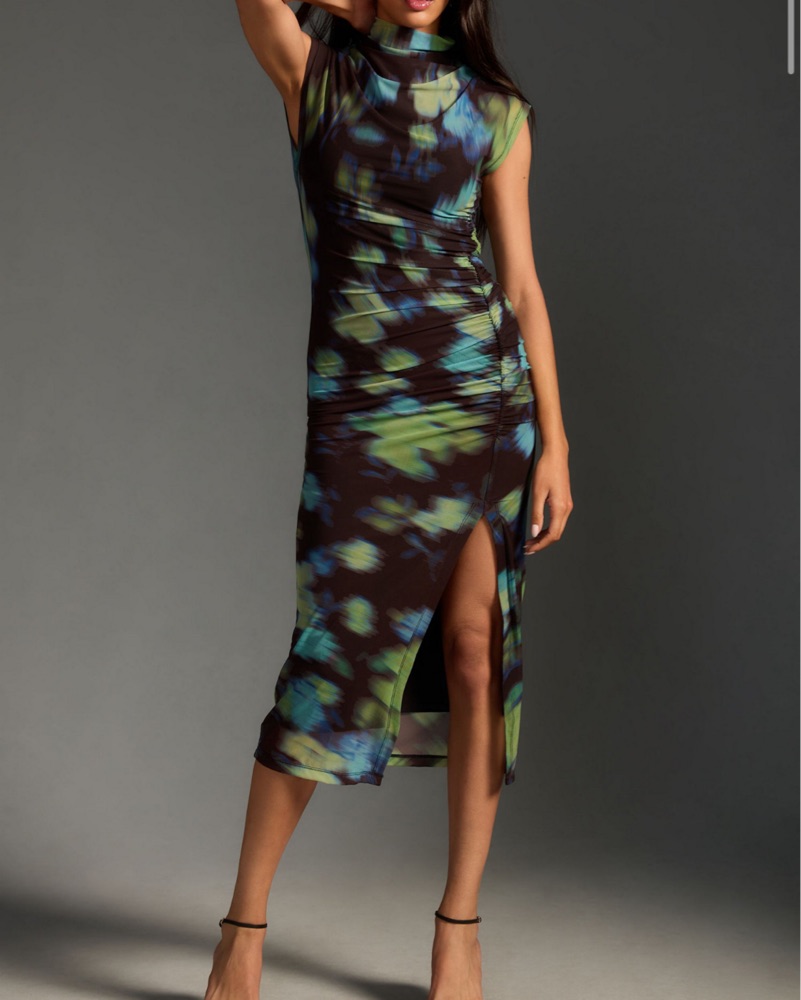 The Maya Ruched Cowl-Neck Dress by Anthropologie - Pickle