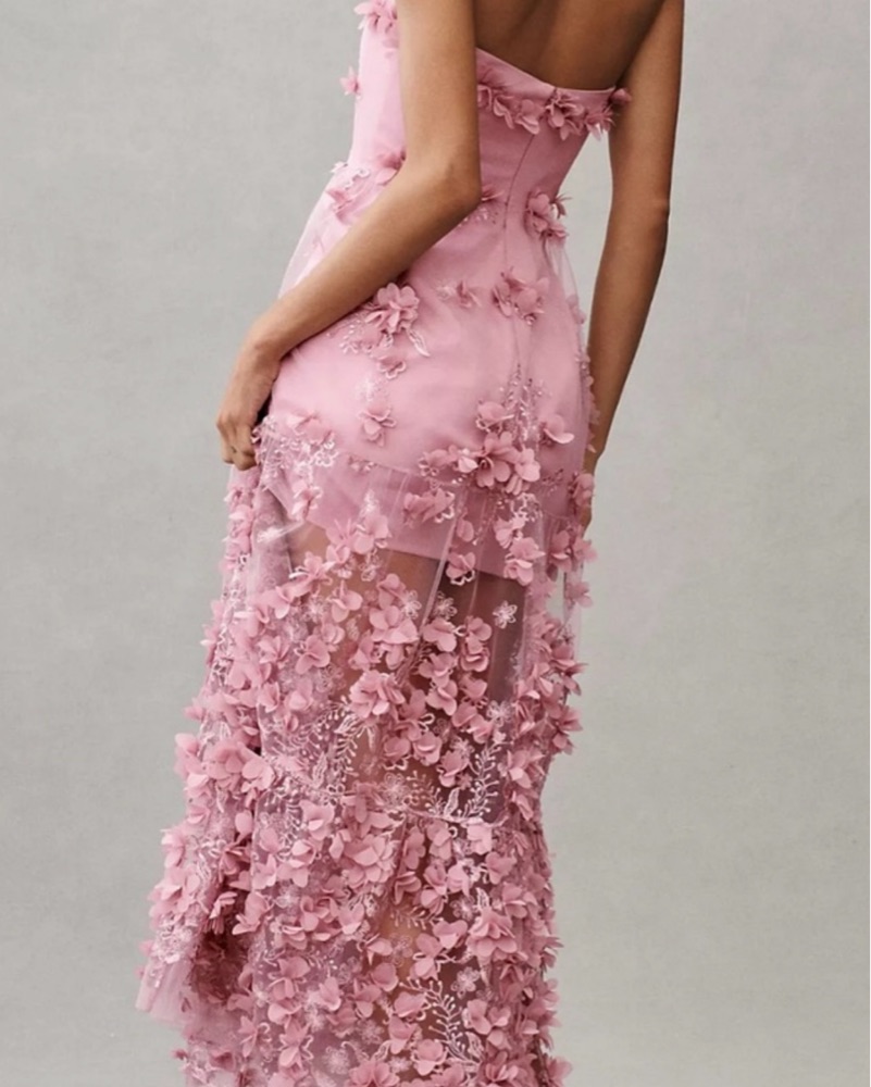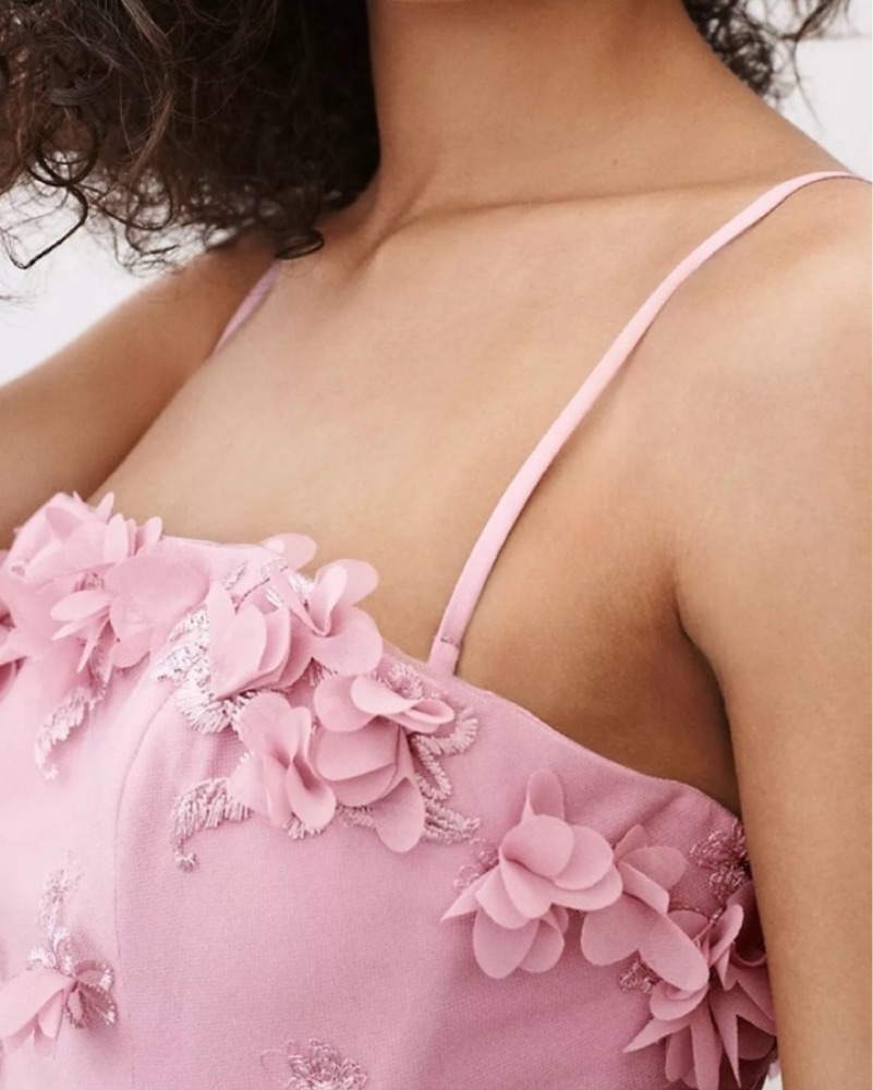 One of my favorite dresses ever! Got so many compliments! Only worn once! Size small but had the bust taken in slightly to stay up without straps. I’m a 2/4 in dresses. Can be worn with straps or without. I’m 5’8 and wore 3 inch heels.