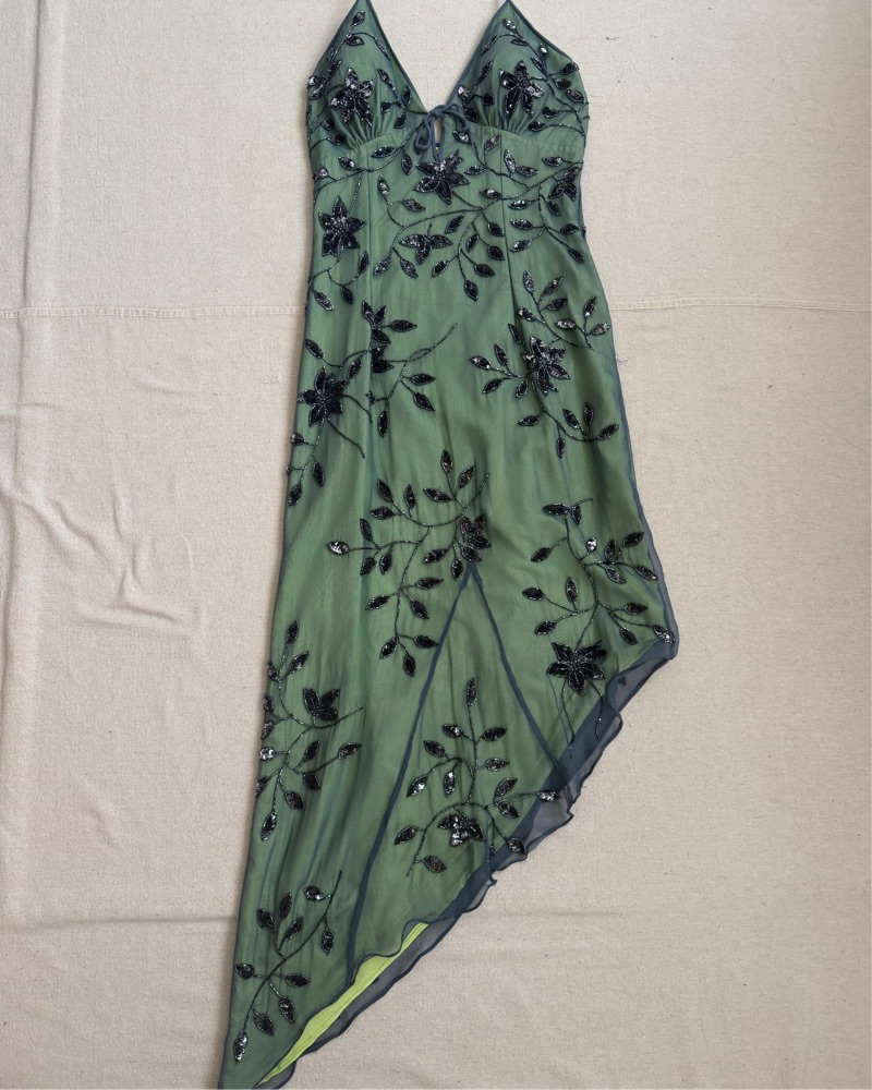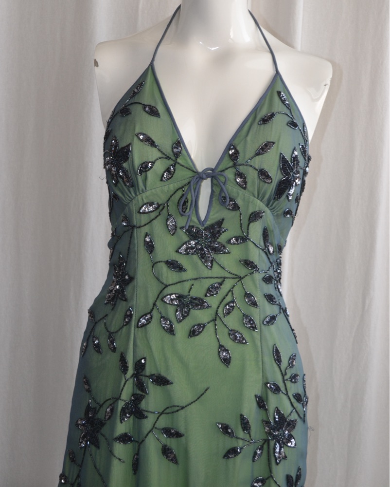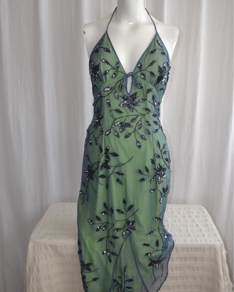 Vintage Silk Cache beaded halter dress by Cache - Pickle