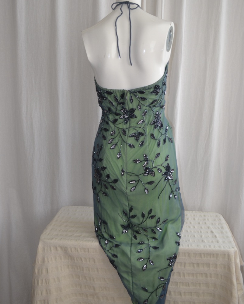 Vintage Silk Cache beaded halter dress
