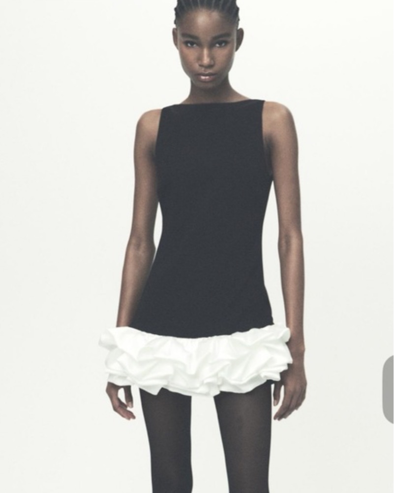 Black Mini Dress with White Trim by ZARA - Pickle