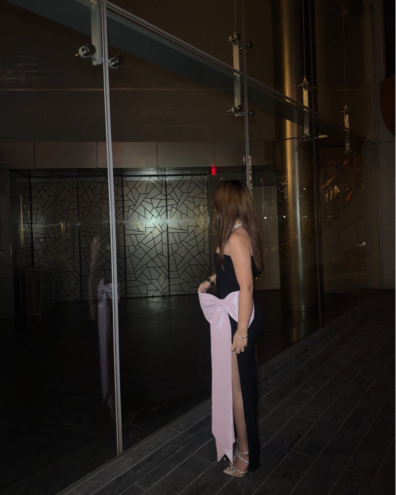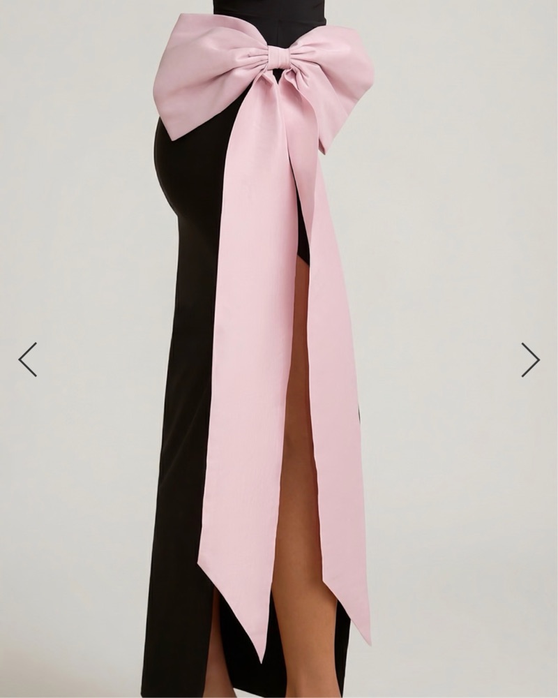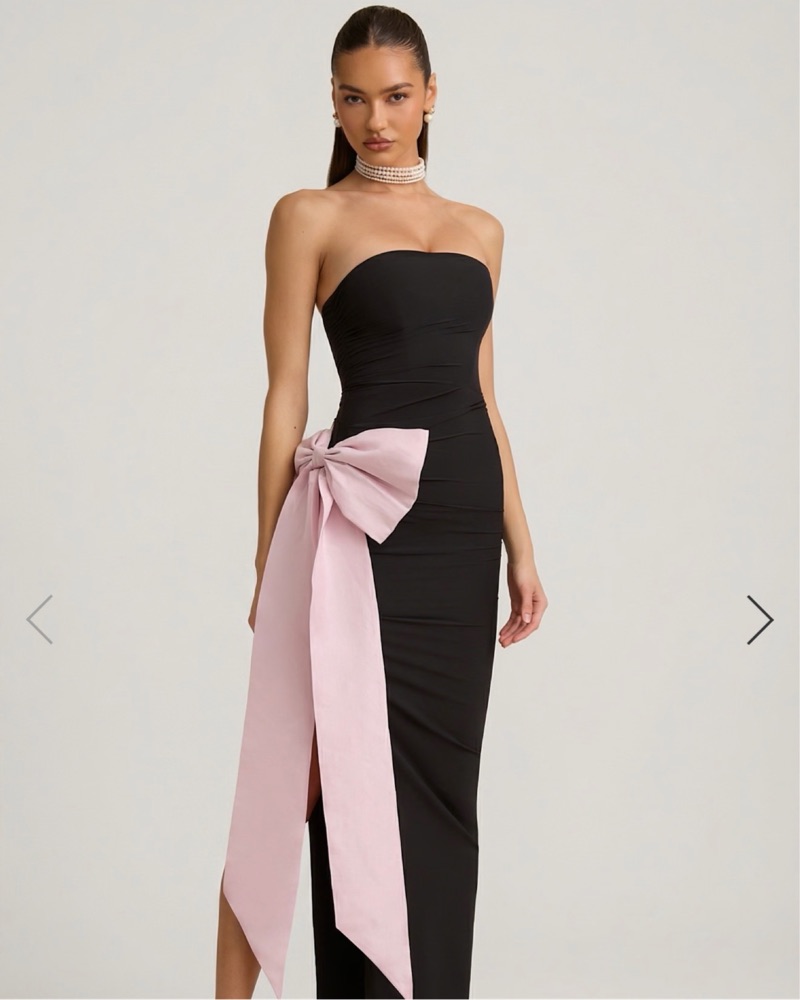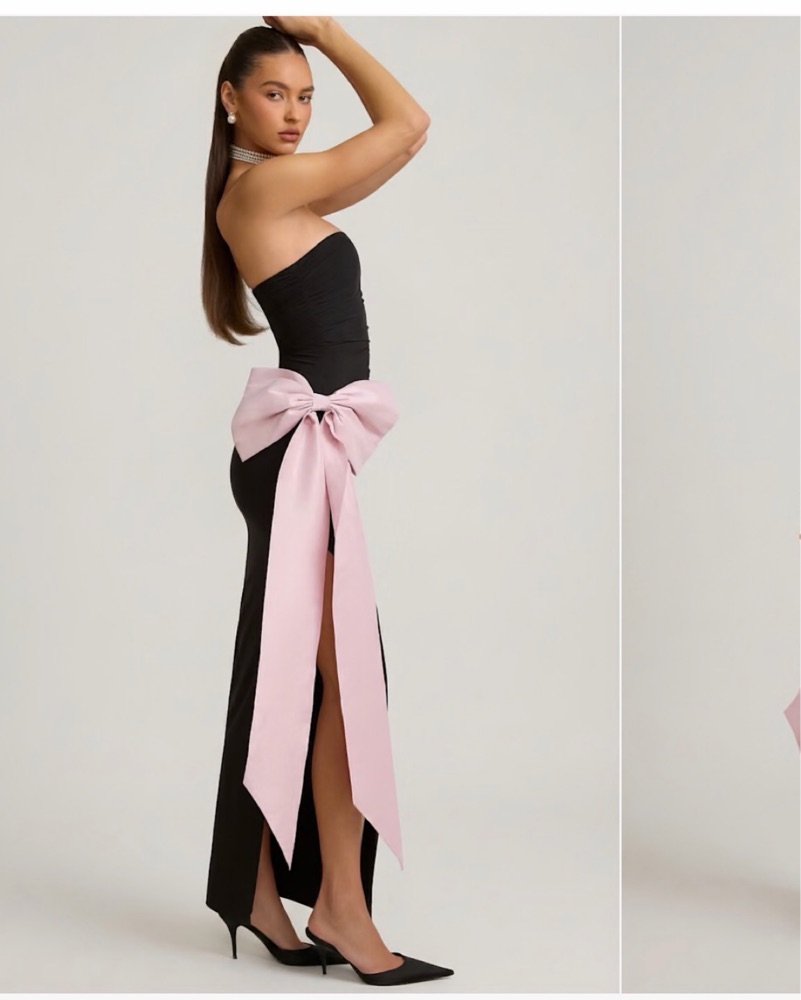 Black strapless maxi with a statement pink bow 🎀 elegant, flattering, and perfect for a standout moment