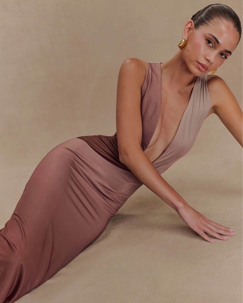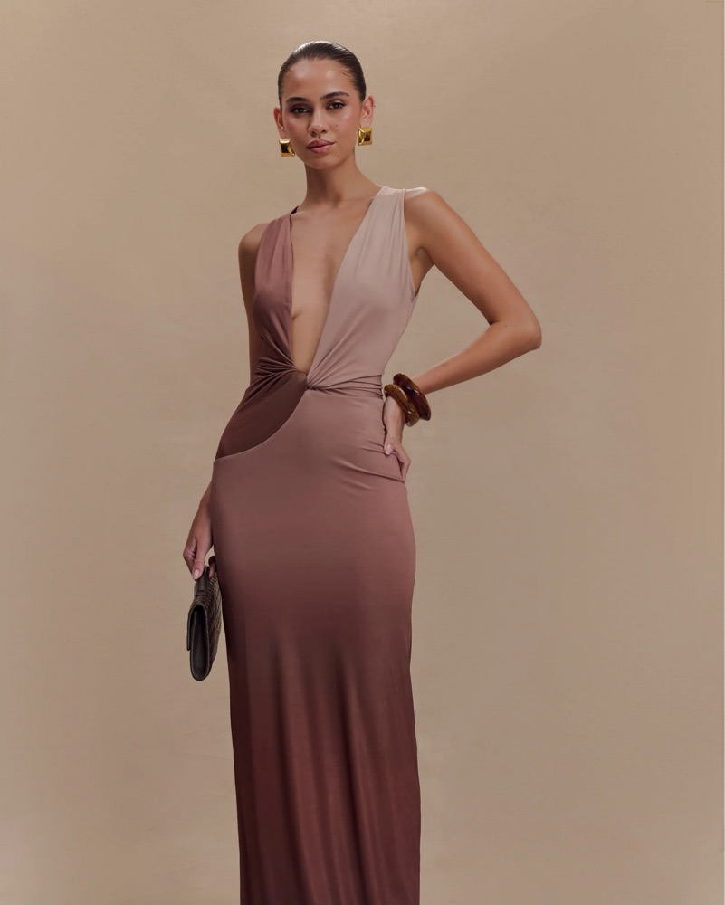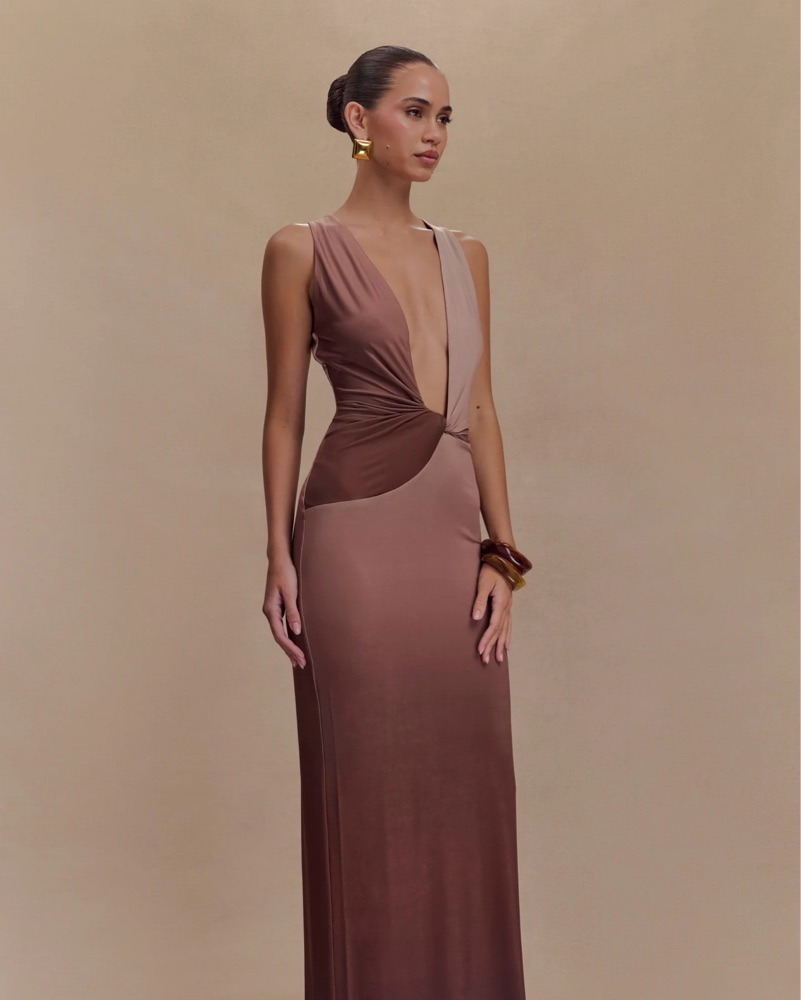 Stunning and sophisticated choice for any occasion. This bodycon dress features a deep plunge neckline and a front twist detail that beautifully accentuates your silhouette.