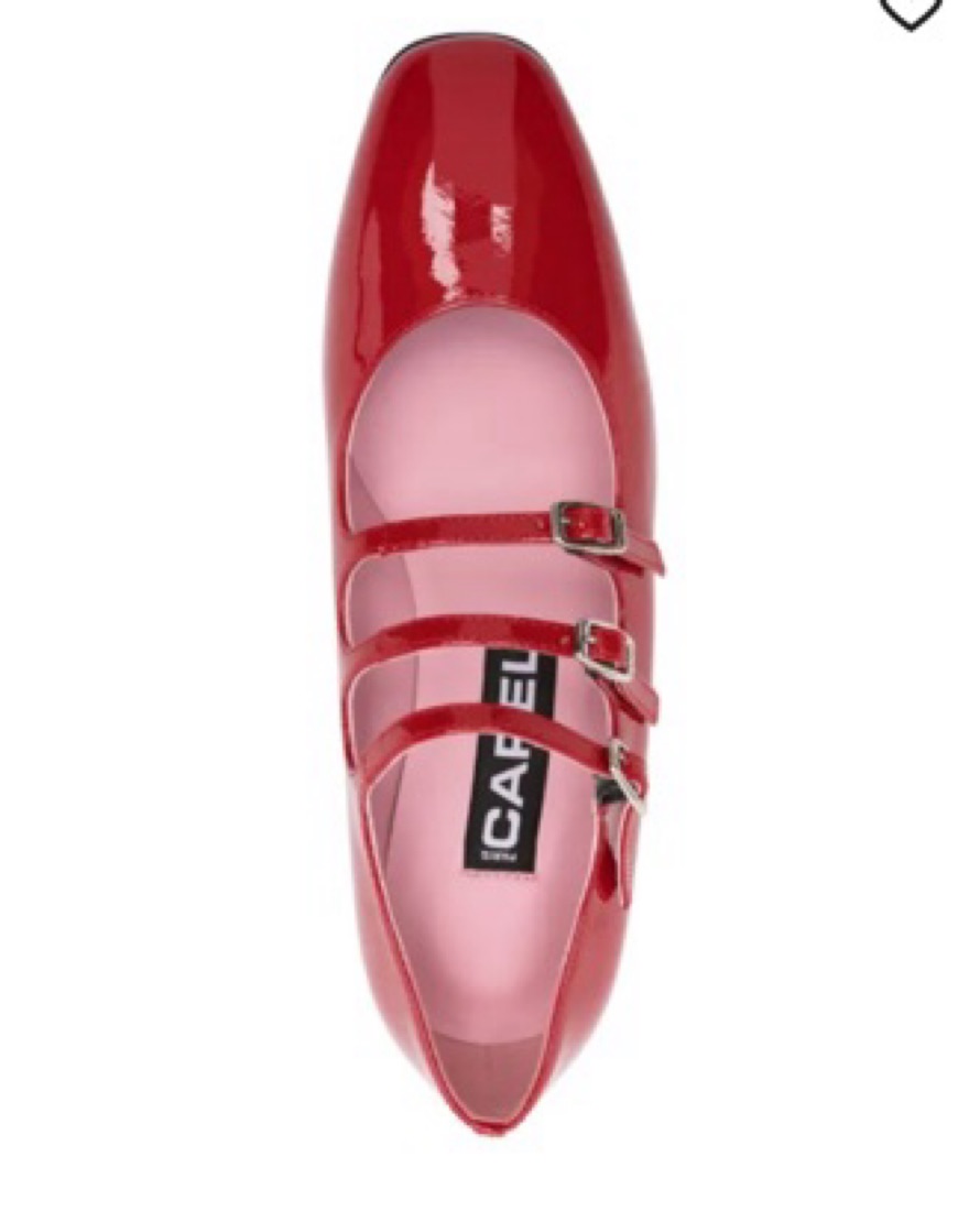 Red Carel Paris Mary Jane shoe with three straps and small heel size 8.5 or 39