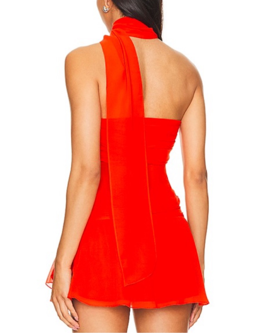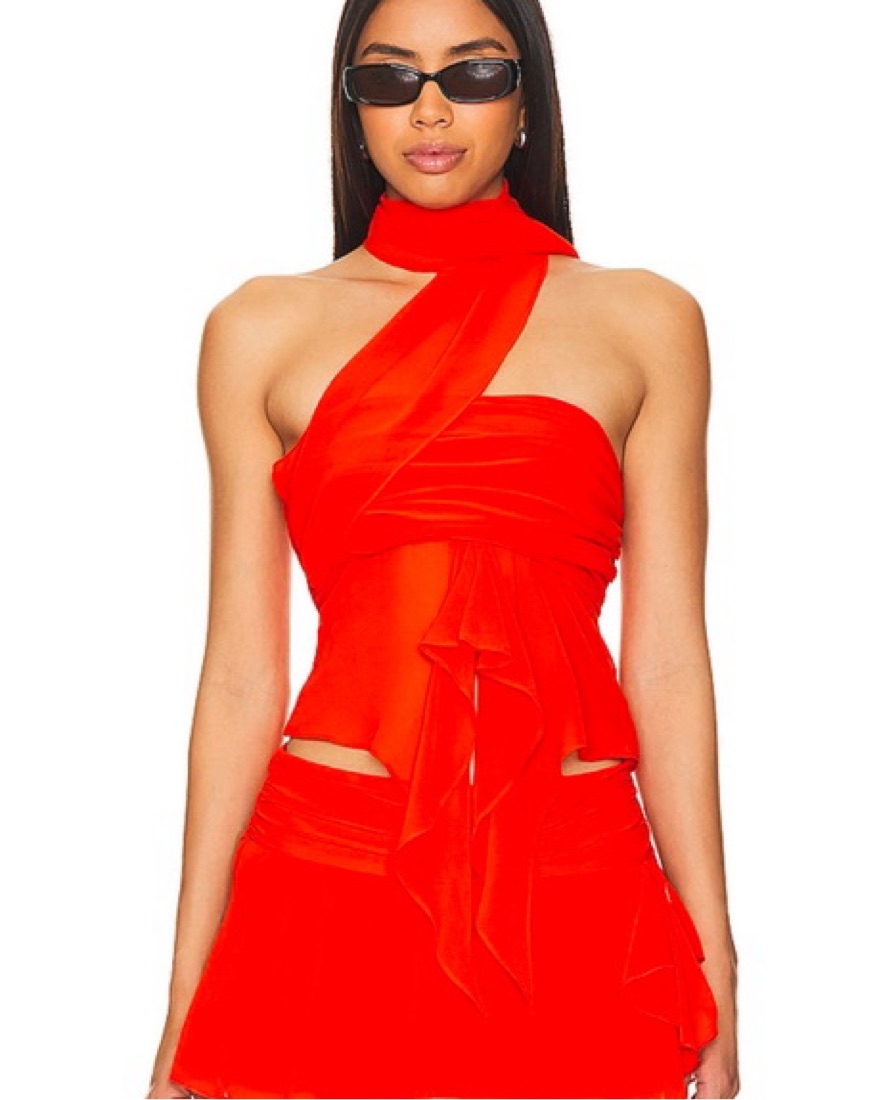 This stunning two piece set in a bold red hue is perfect for a night out. Please note the skirt is a true mini skirt and the top runs quite small. Handle with care as the fabric is quite delicate! Tags: Danielle Guizio, danielle guizio, y2k, micro skirt, scarf top, set, two piece set, red set, brat