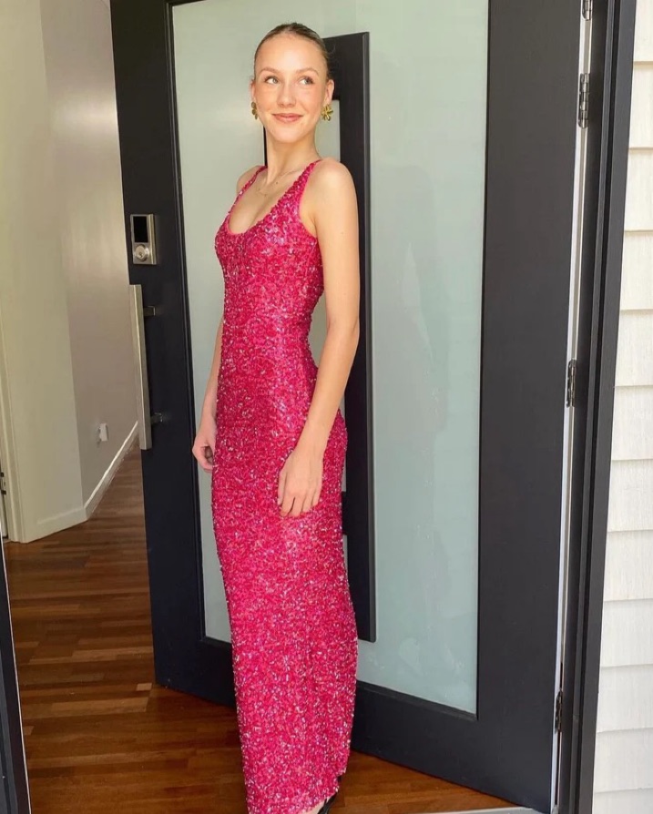 Tonal sequin embellishments throughout with back vent, perfect for birthdays, formal events, valentines, galas, weddings, new years, holidays