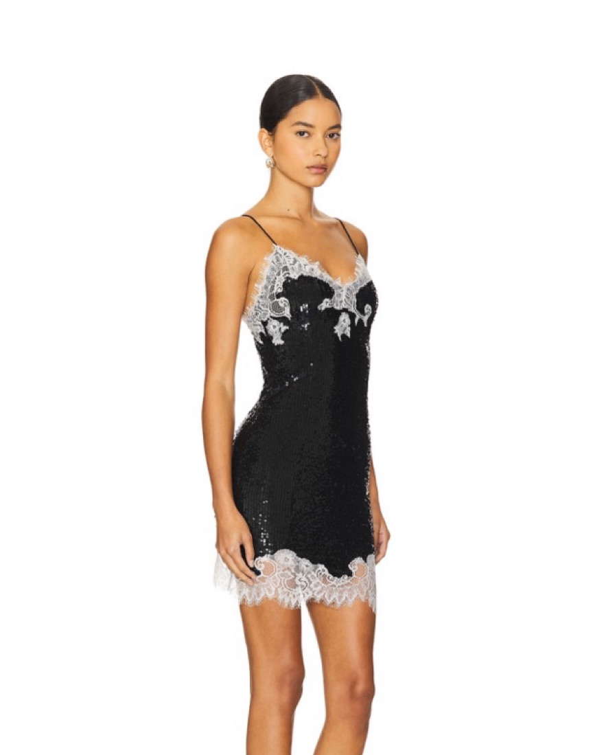 Revolve - Alice + Olivia - Harley Sequin Mini Slip Dress in Black & Off White