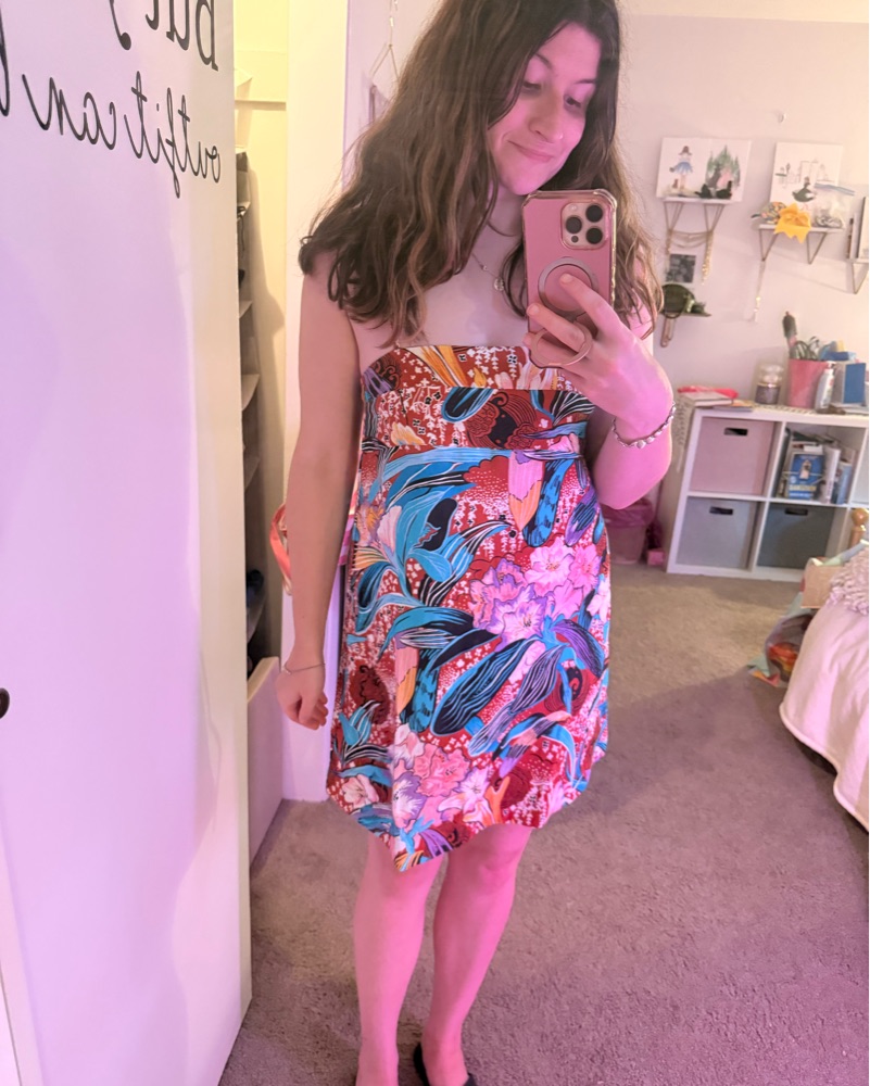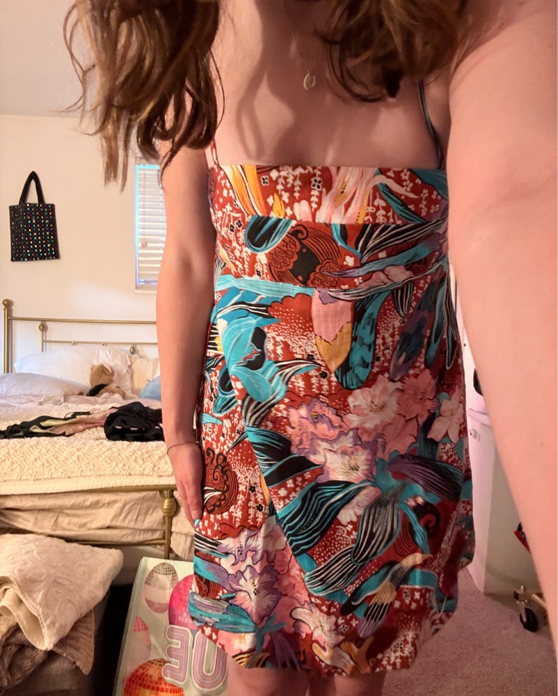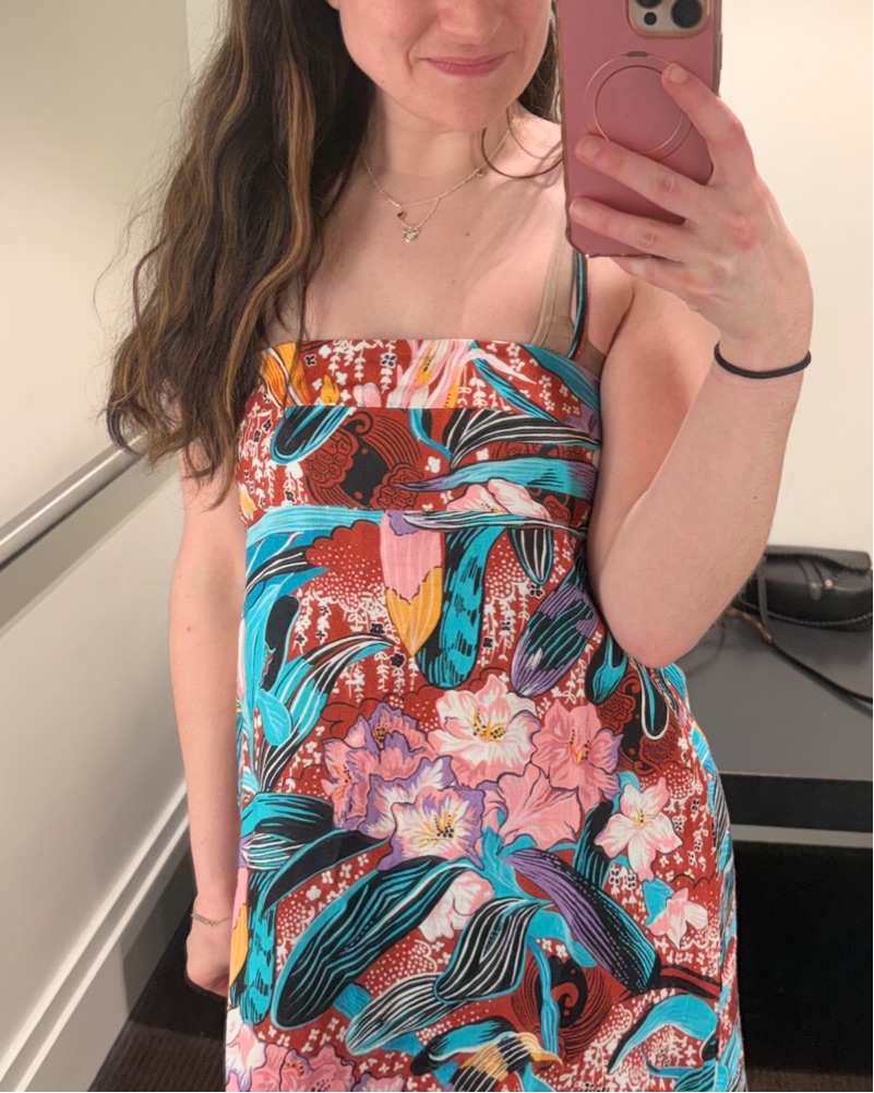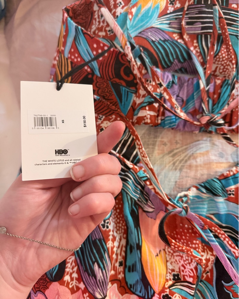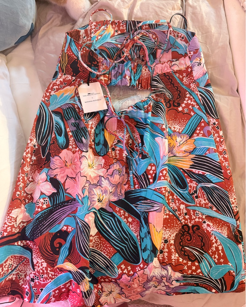 This eye-catching dress features a bold botanical print that makes it perfect for a fun summer outing or tropical vacation. White Lotus fan this is from the collection from Banana Republic. New with tags. Never worn. Perfect for a vacation getaway and easy to breeze in with the linen material