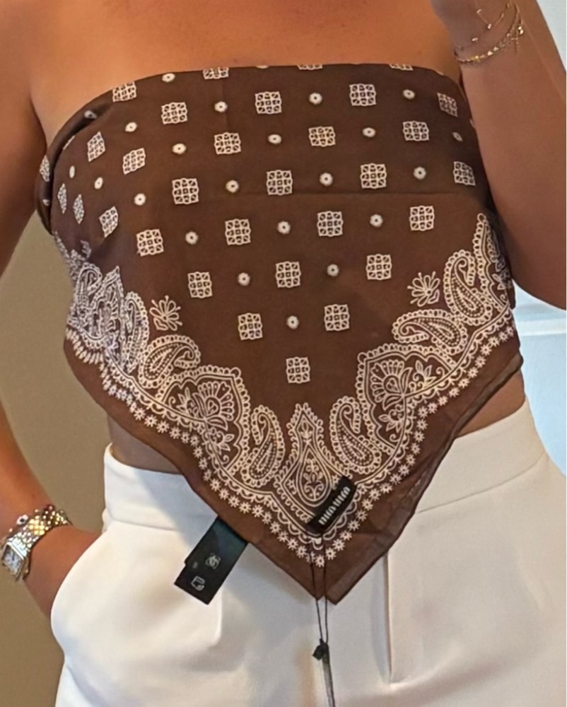 Brown and white Miu Miu bandana top. Can be worn many ways!! Can fit a S-XL.