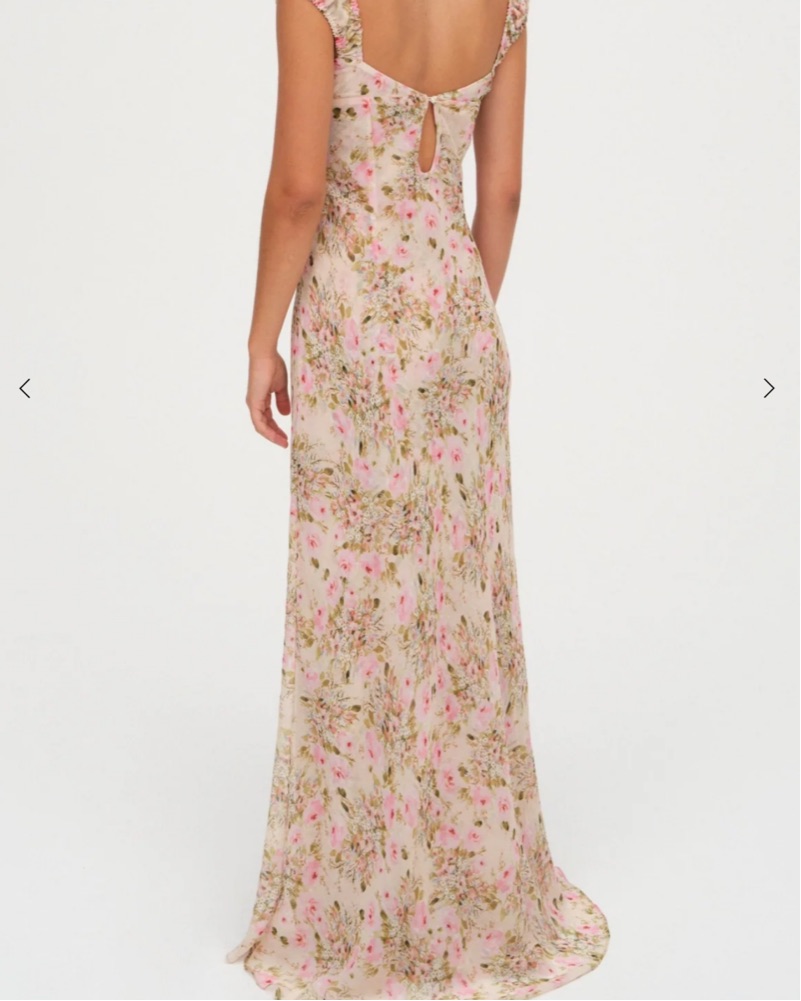 Such a pretty maxi for a summer date night or wedding guest dress! Every time I wear this dress, I get a million compliments! In perfect condition. ***please do not borrow if you’ll be wearing self tanner, body oil, or are prone to spills! All long dresses must be worn with heels to keep from draggi