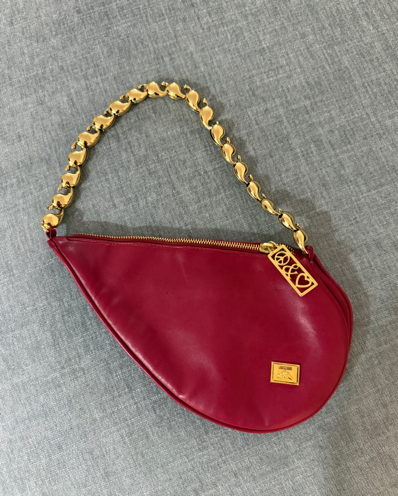 The Moschino heart bags were made famous by the iconic TV character Fran Fine on The Nanny and continue to be statement bags today. Obsessed with this one and the gorgeous gold chain handle!
