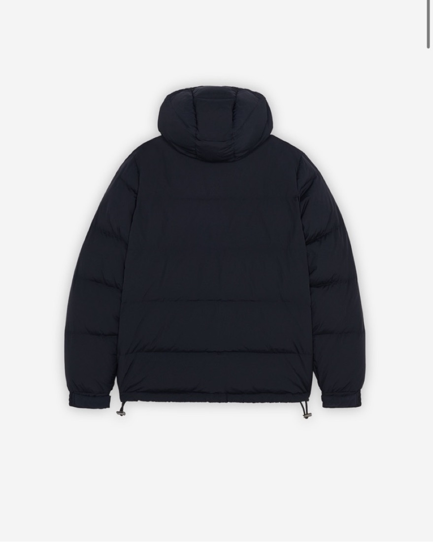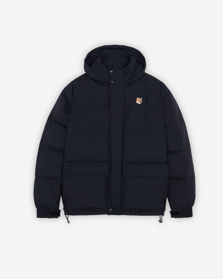 Hooded puffer jacket - navy color. Classic cropped cut with embroidered Fox Head patch on the breast.