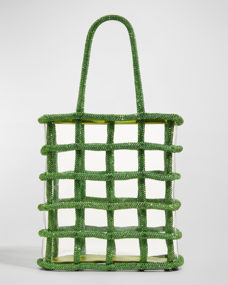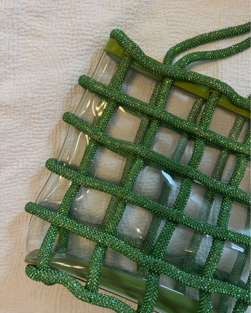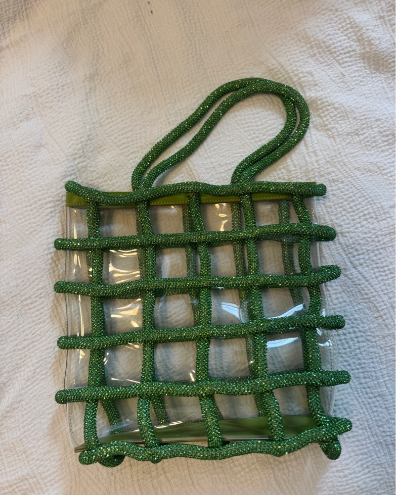 only worn once in perfect condition - green rhinestone cult gaia north south tote. apx 10 inches wide, 10.25 inches tall and handle is ~7inches . cute for vacation