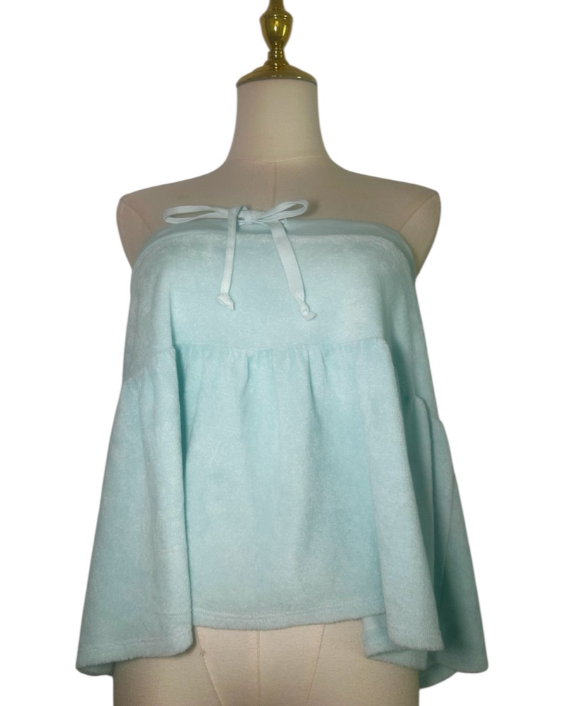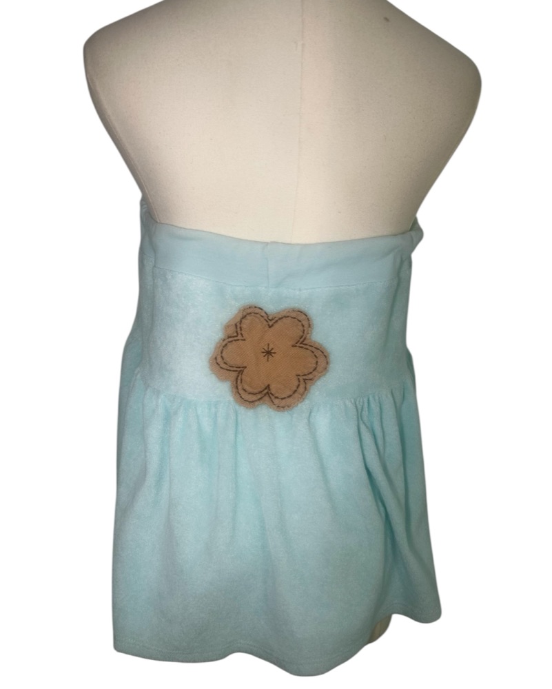 Adorable 2-(or 3)-in-1 Vintage Skirt and Top Set. Blue terry cloth. Size XS but the string is adjustable will fit up to M 100%!! perfect for beach and vacations!