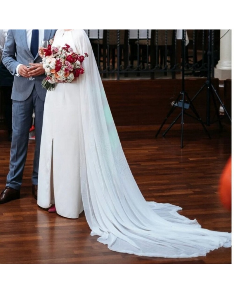 Custom Made Bridal Feather Silk Cape by Custom - Pickle