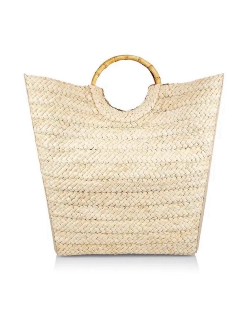 Cult Gaia's Jerrica tote bag is crafted of woven straw and topped with circular bamboo top handles. Two top handles. Toggle closure. Straw/bamboo. Imported. SIZE & FIT About 13"W x 17"H x 5.5"D. Color: Natural.