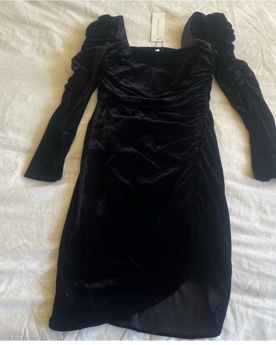 Beautiful velvet long sleeve mini dress, black, size 2, brand new