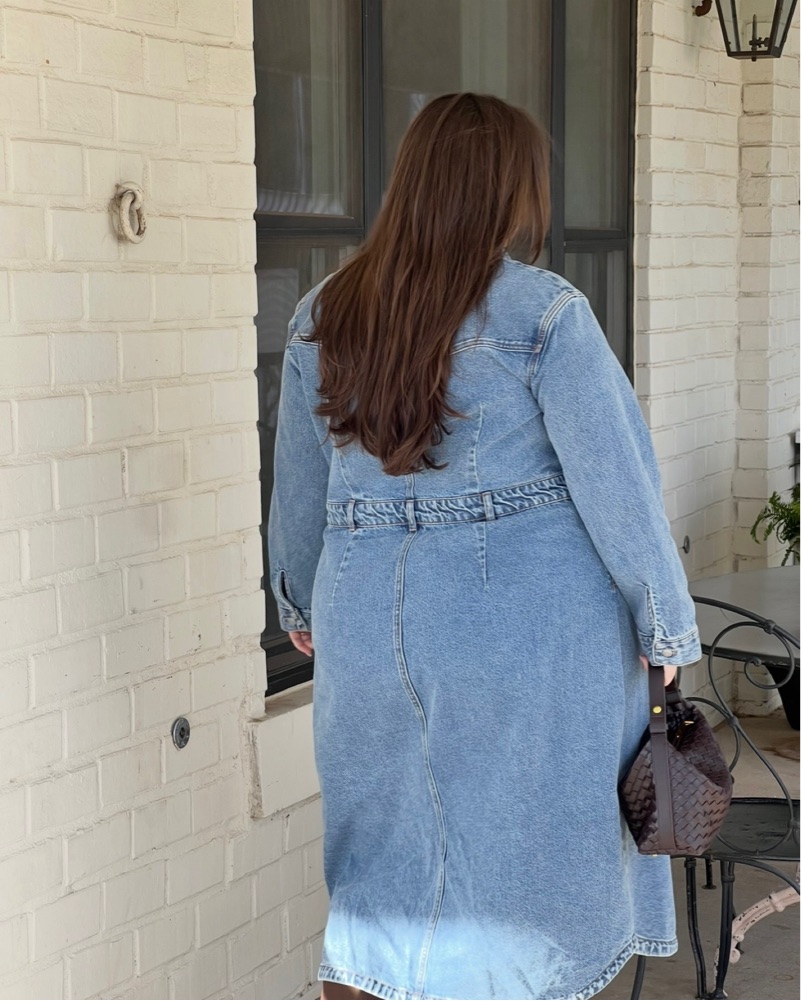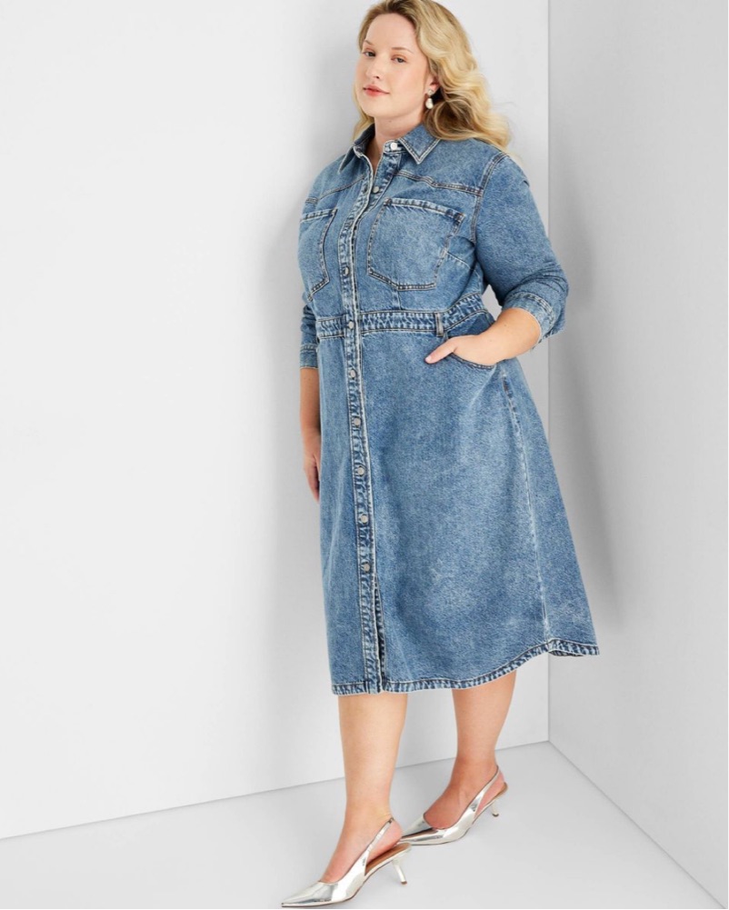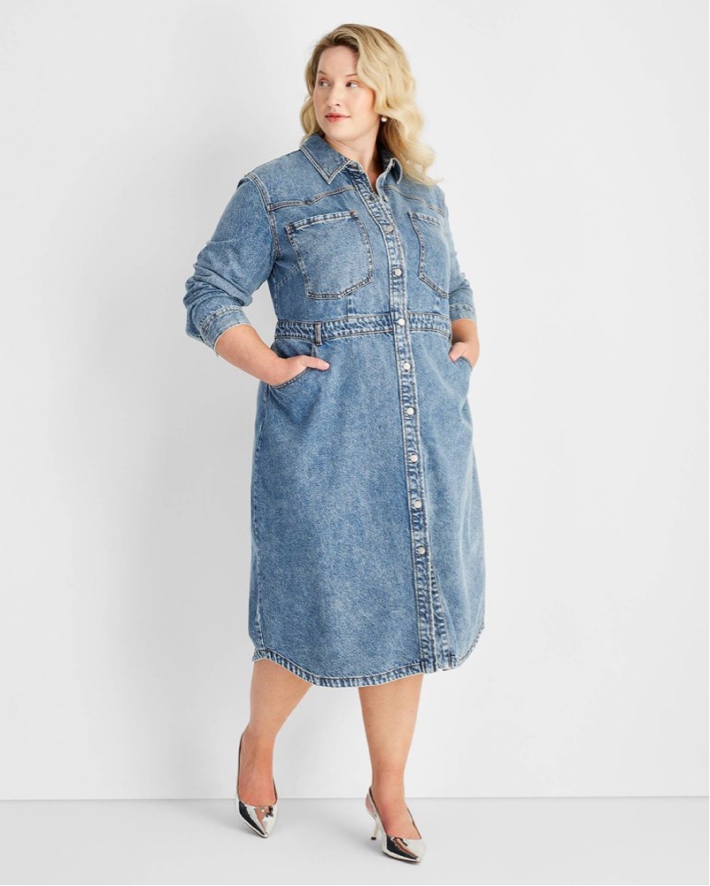 This denim shirt dress is a versatile piece that can be dressed up or down. Wear it to the office with heels or to brunch with sneakers.