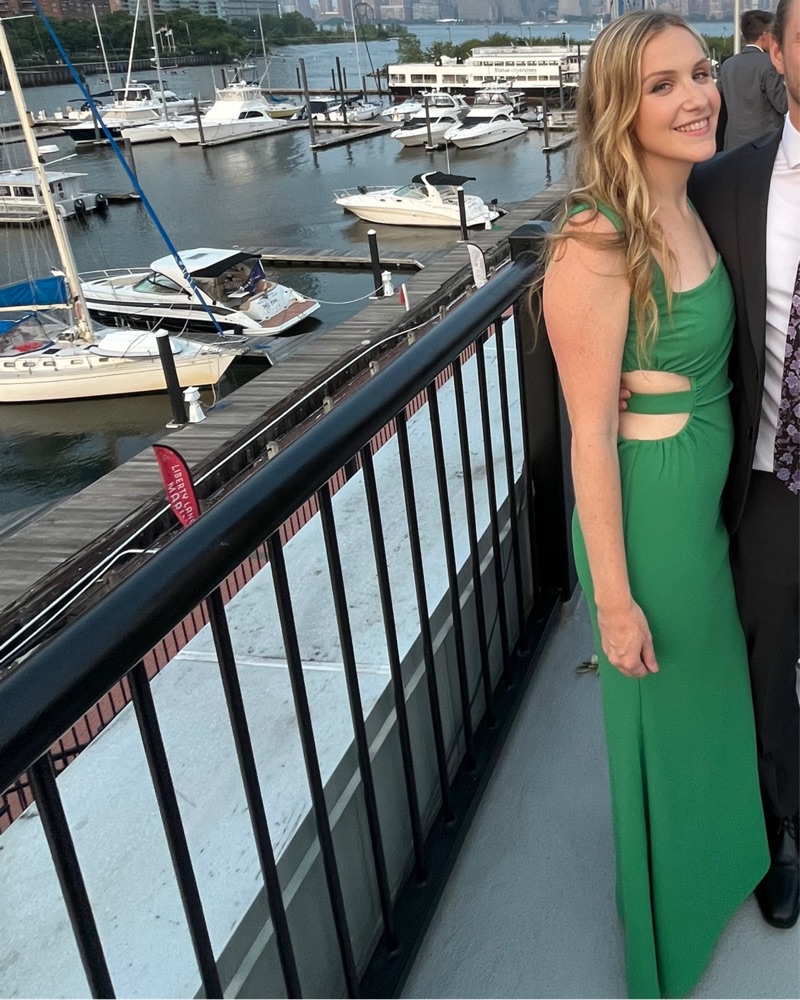 Kelly green maxi side cutout dress with square neckline. Size small. Only worn once and dry cleaned. Originally around $80.