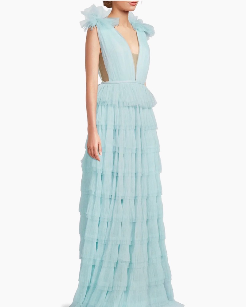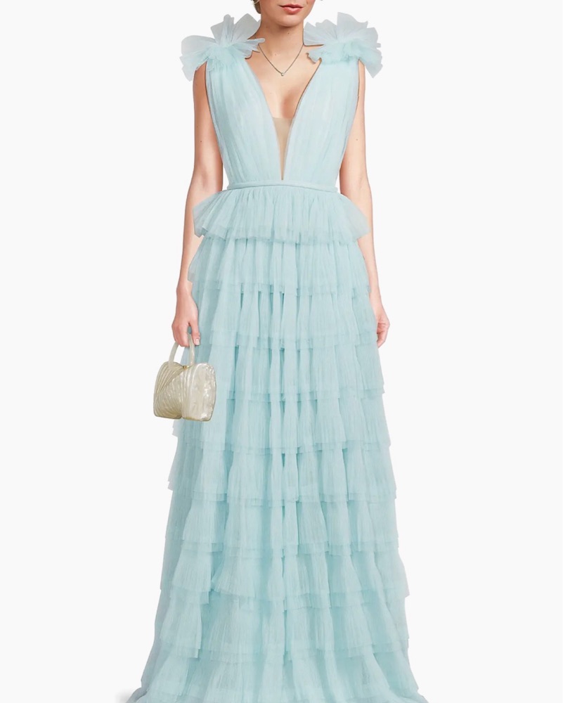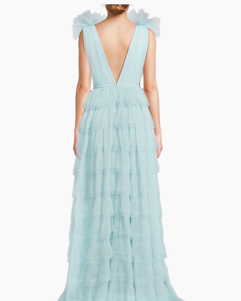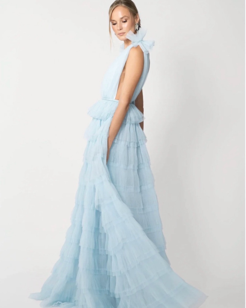 A dreamy, airy gown perfect for a formal event or special occasion. The layers of soft, delicate tulle create a romantic, voluminous silhouette.