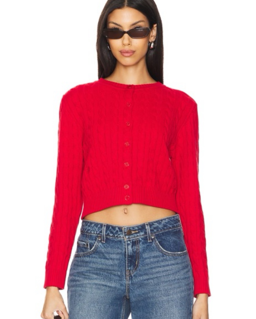 Frankie’s Bikinis Dudley Cable Knit Cardigan in Heartstrings
