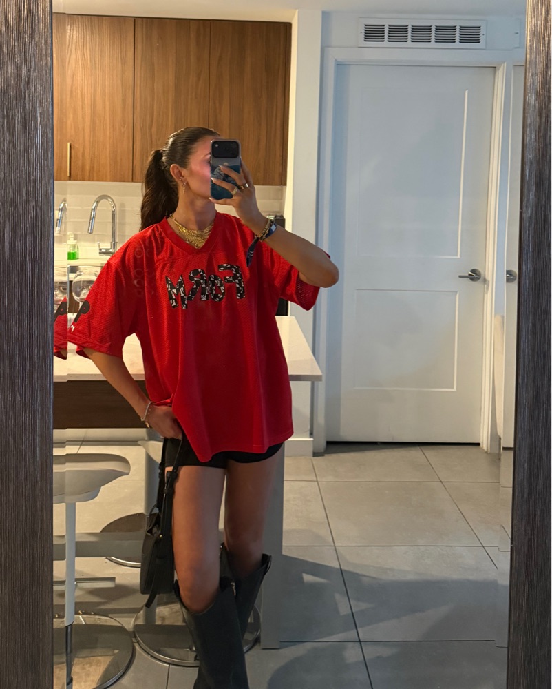 This bold red graphic tee dress is perfect for a night out with friends or a casual weekend brunch. The oversized fit and graphic print give it a trendy, streetwear-inspired look. I am 5’5 for reference