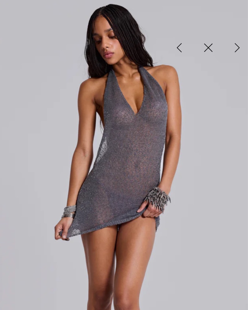 Jaded London Halter Mini Dress in gunmetal. Size small