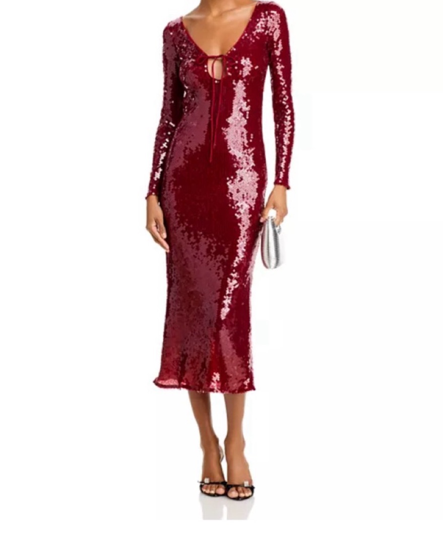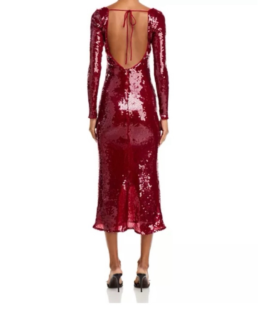 Size 2 Burgundy sequin midi dress. Only worn once, in great condition!