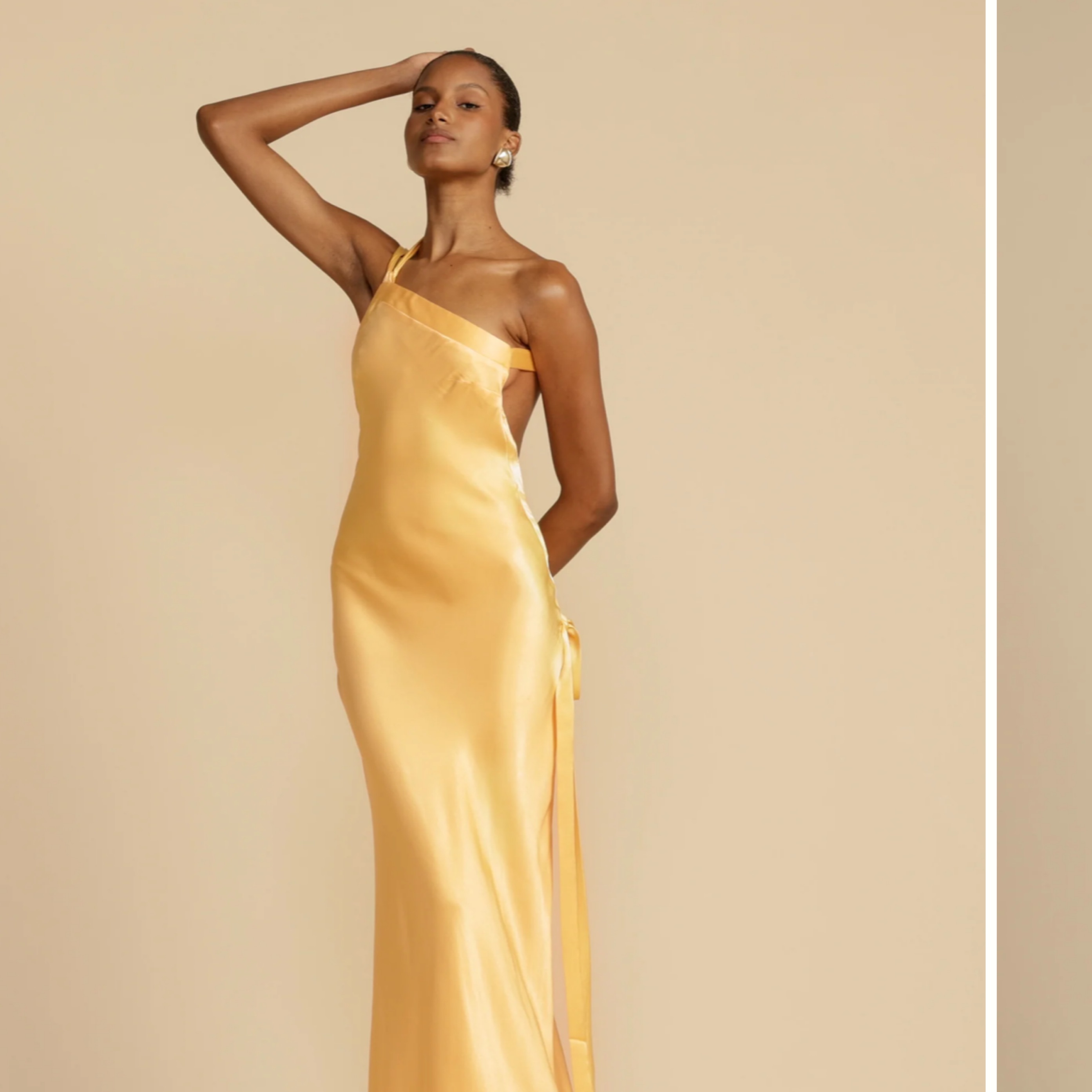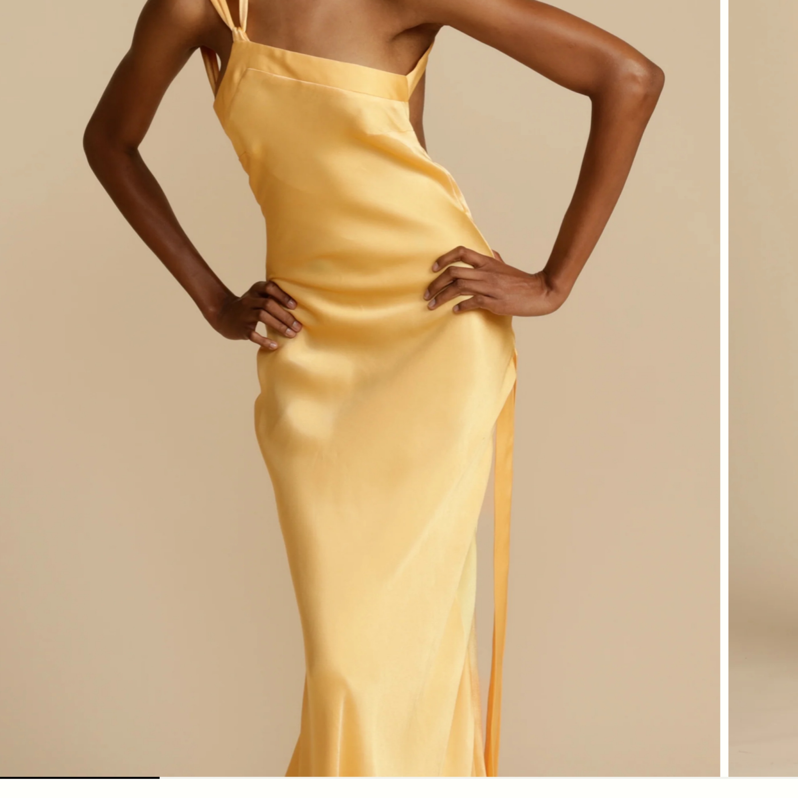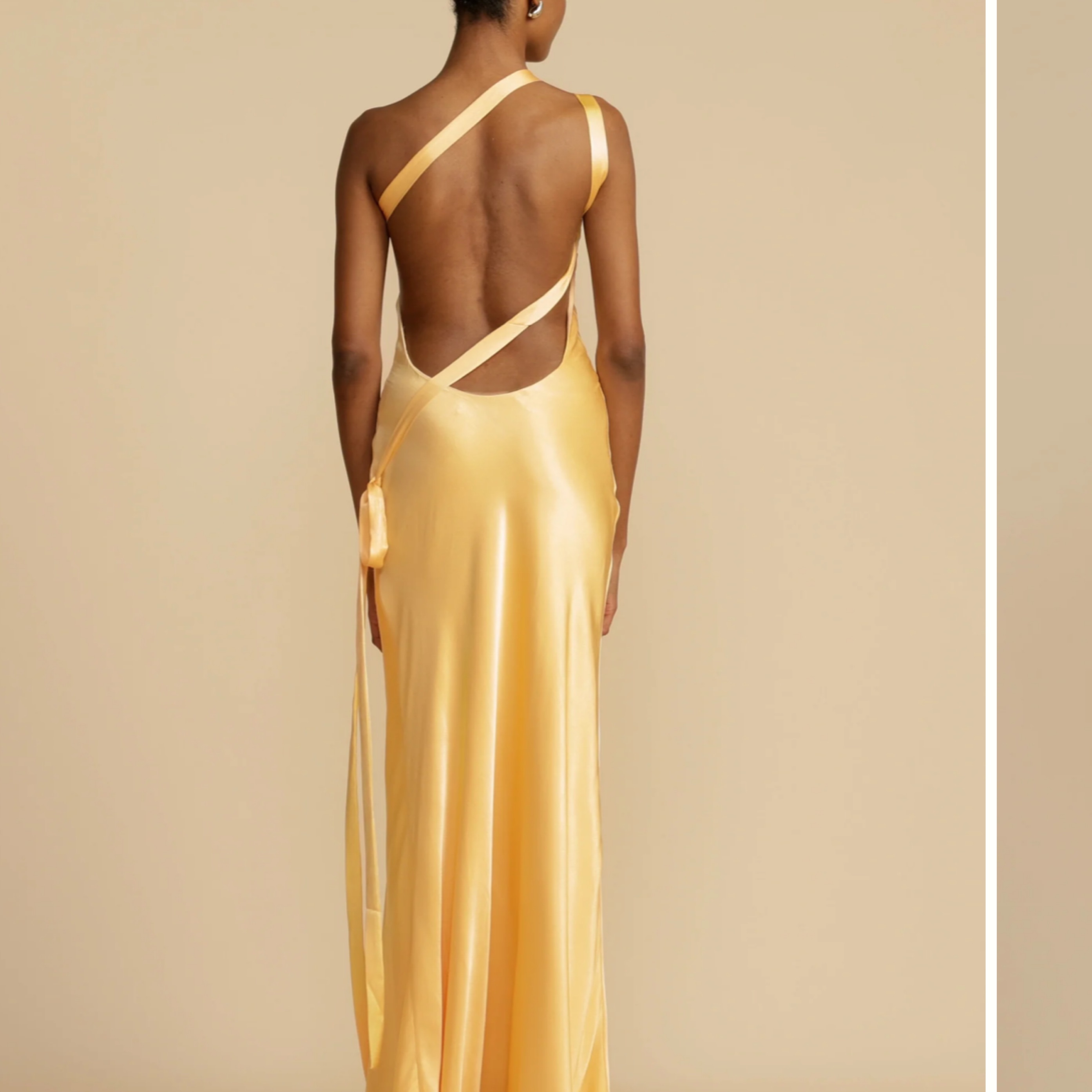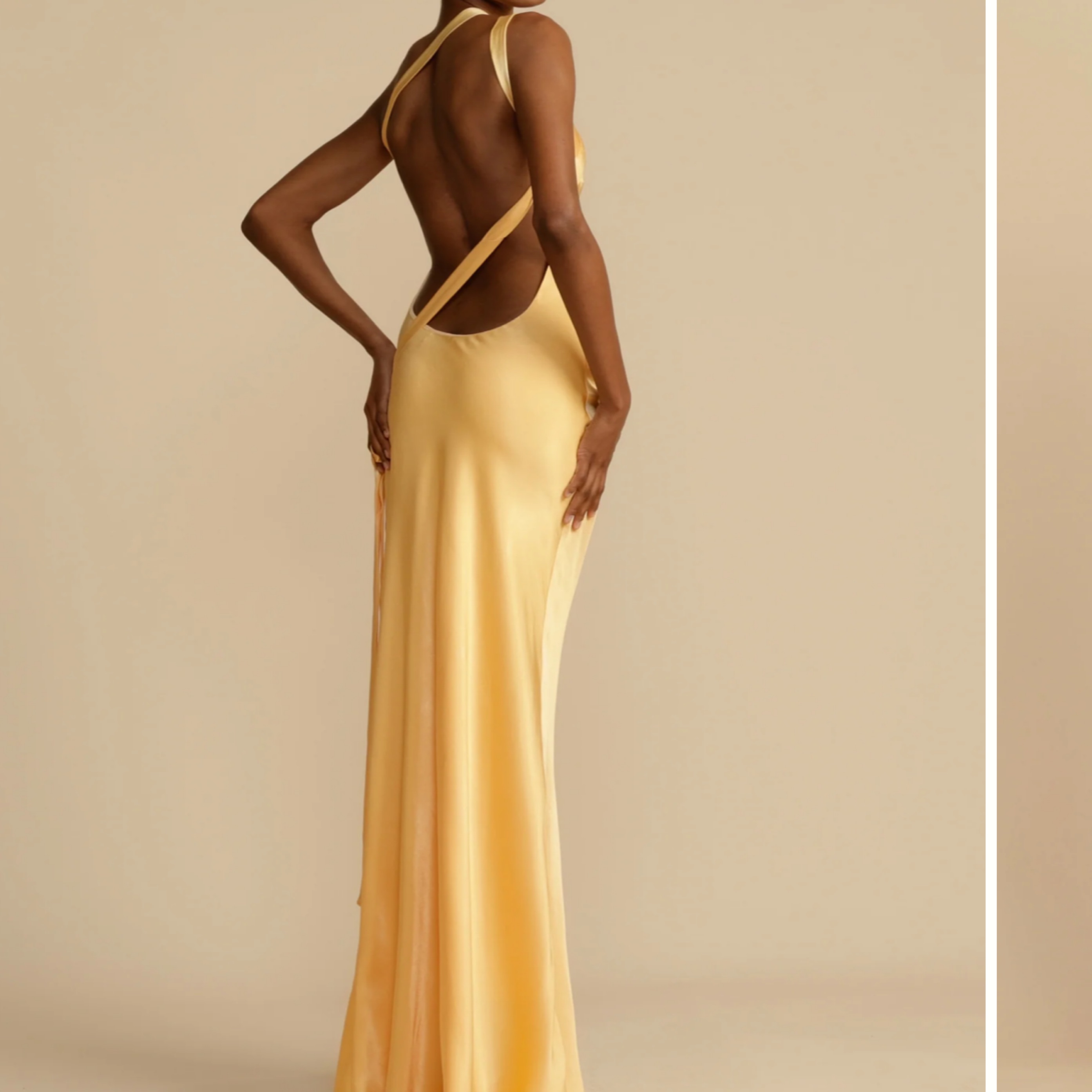 Beautiful yellow gown perfect for summer weddings!! Fits so well and got tons of compliments! HEMMED 4in. See first&last photo for length reference. Model is 5’9 and looks like wearing heals. Im 5’1 + wore 4.5/5in heels and it was hitting the floor ***Hem line has some light dirt on it
