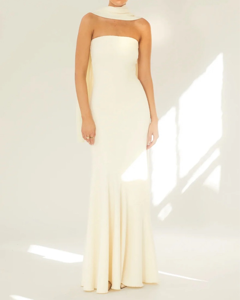 Gorgeous choice for formal events and perfect for any bridal event. Please take care of this dress as I hope to wear it again! The material is super thick and lays beautifully