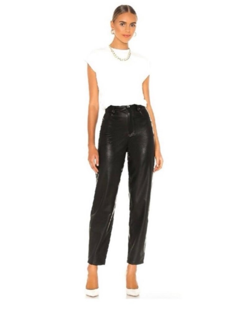 Chic faux leather pants by WeWoreWhat. Sleek and stylish design. Comfortable and warm.