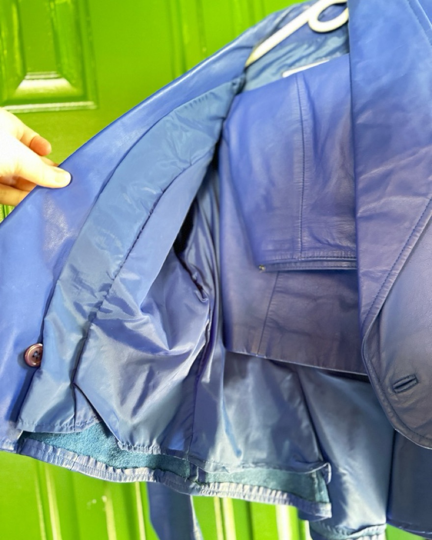 Blue Leather Vintage Skirt And Jacket by CHIA - Pickle