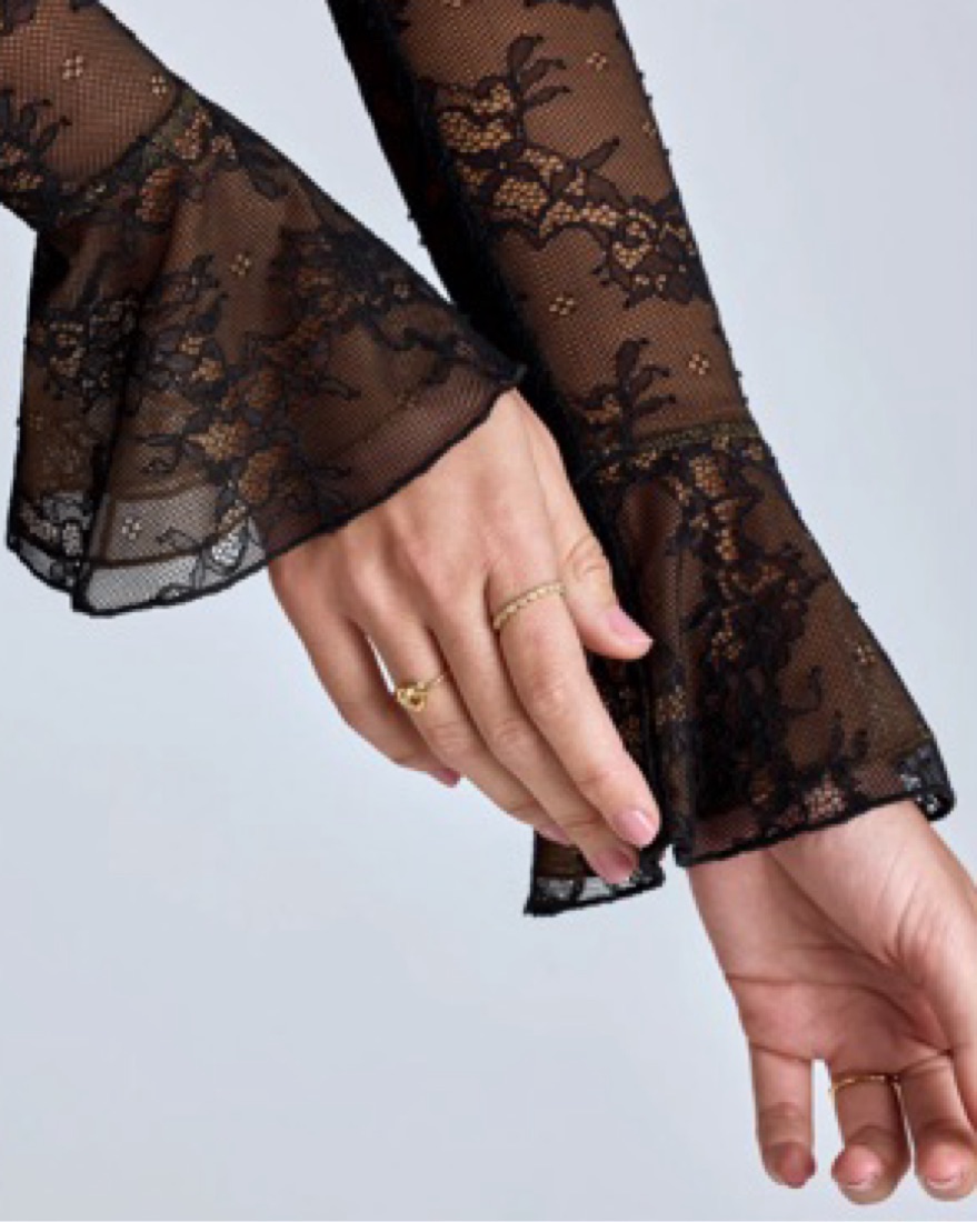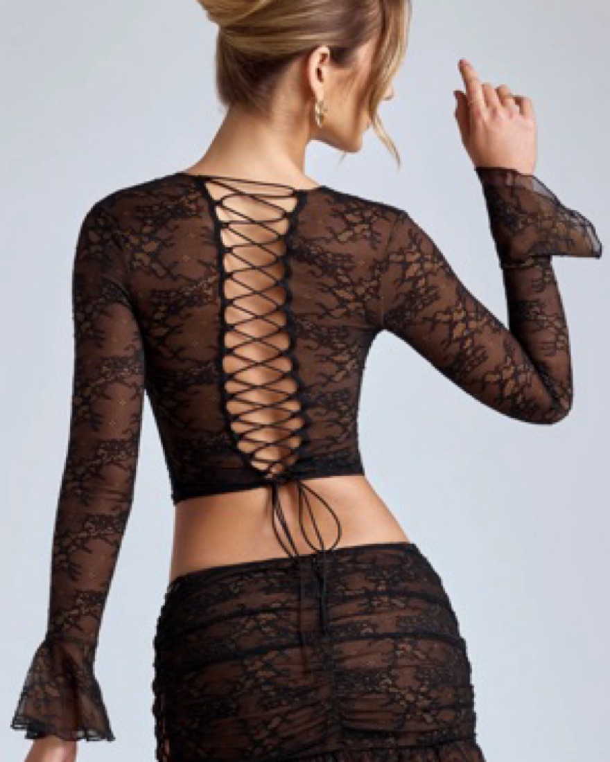 Oh Polly Black Lace Long Sleeve Lova Top