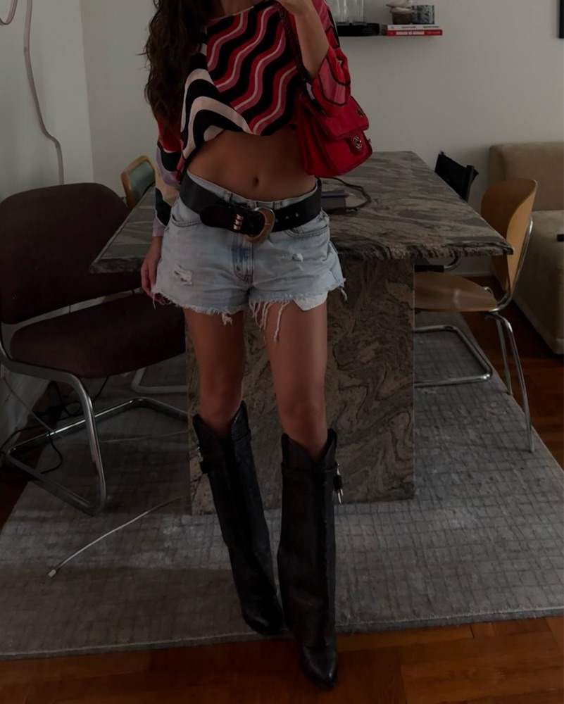 Pair with black tights and a sweater dress or style them with cutoffs when it’s warm :)
