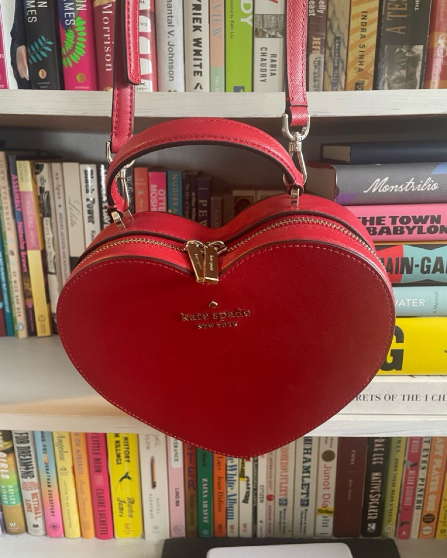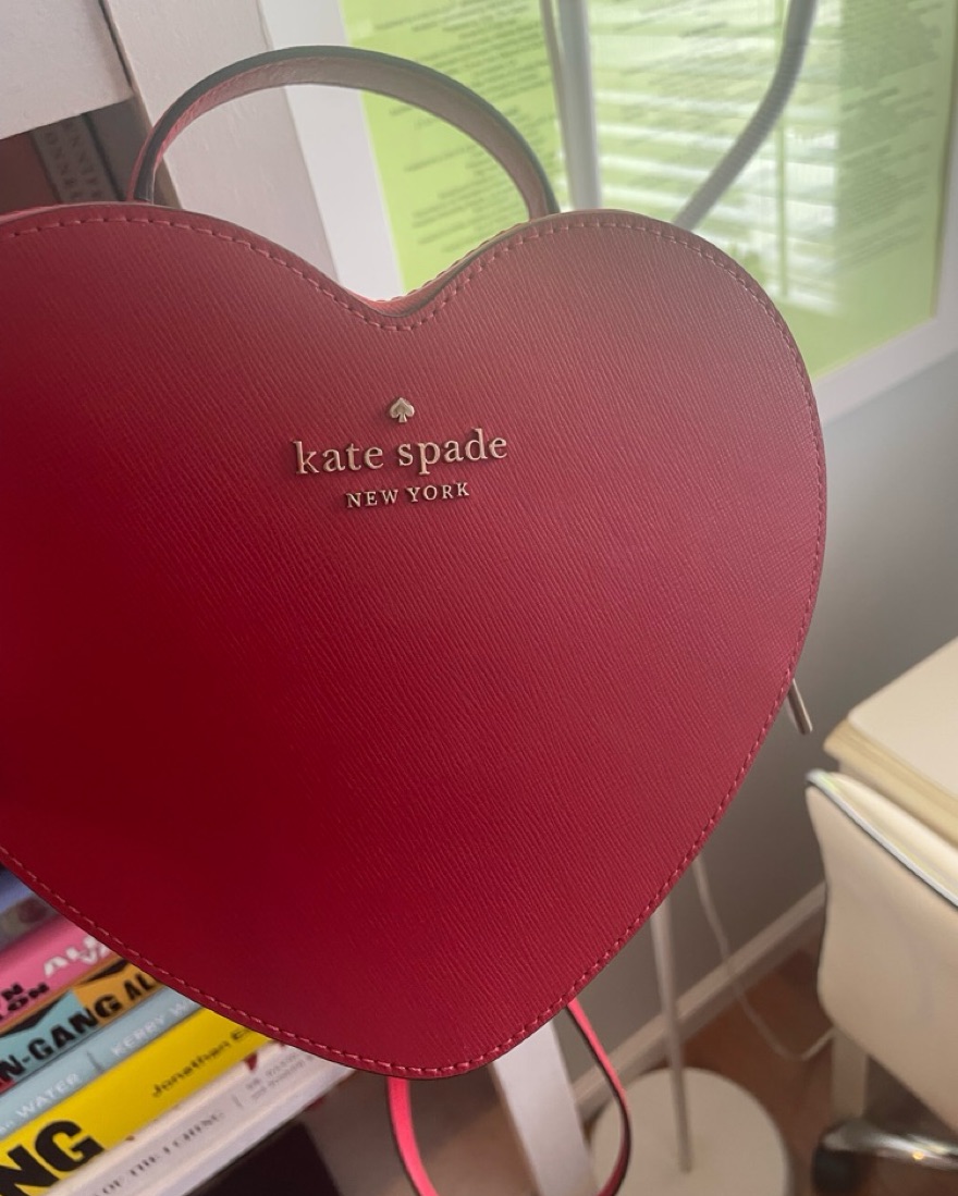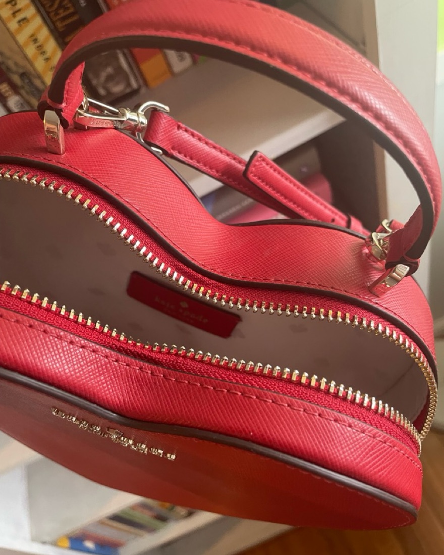 Perfect for Valentine’s Day! The Kate Spade Love Shack Heart Crossbody bag in Candied Red. Similar to the Moschino Heart Bag as seen on Fran Dreshire in the tv show The Nanny.