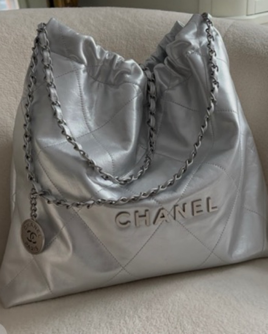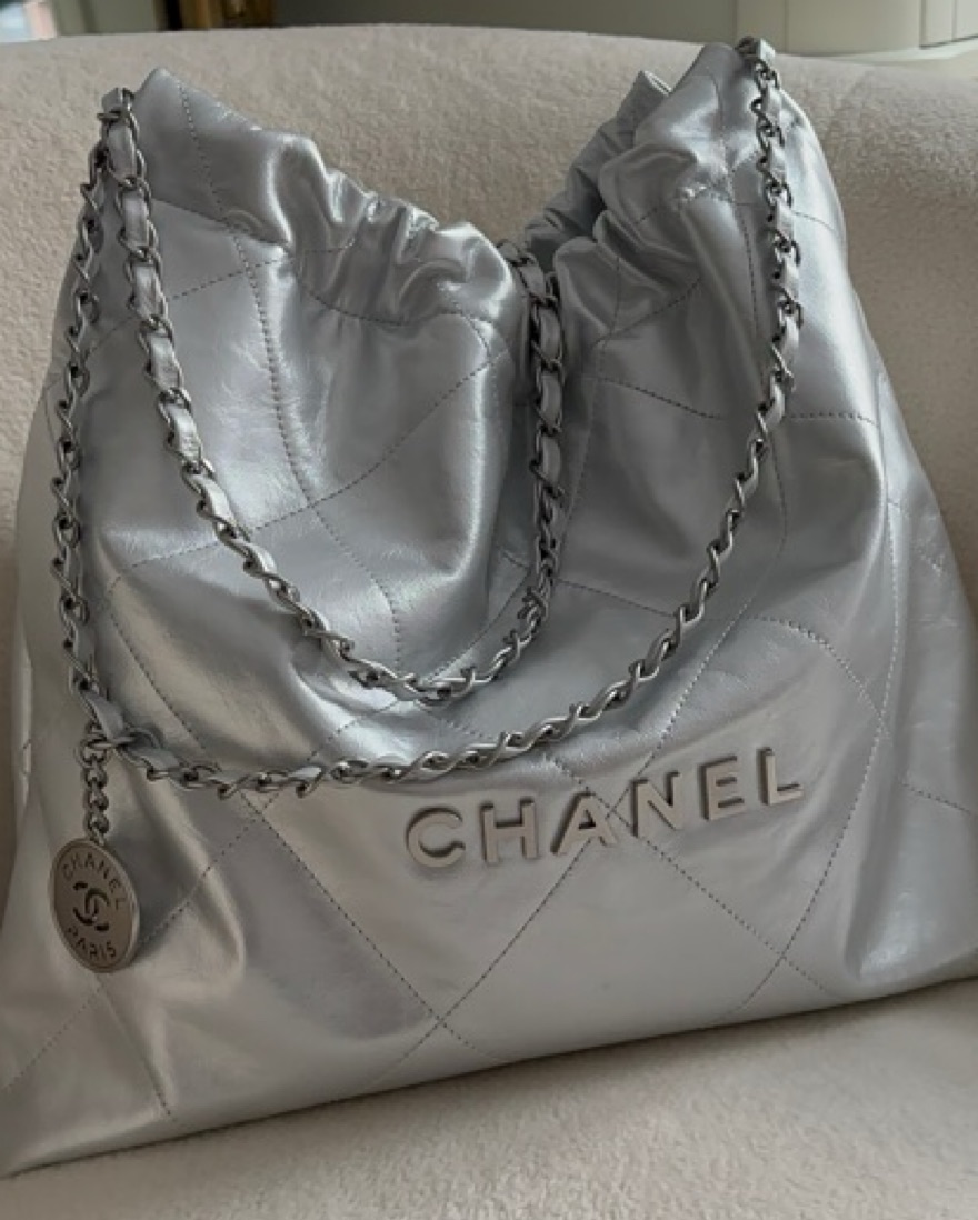 Medium Silver Chanel 22 Bag by Chanel - Pickle