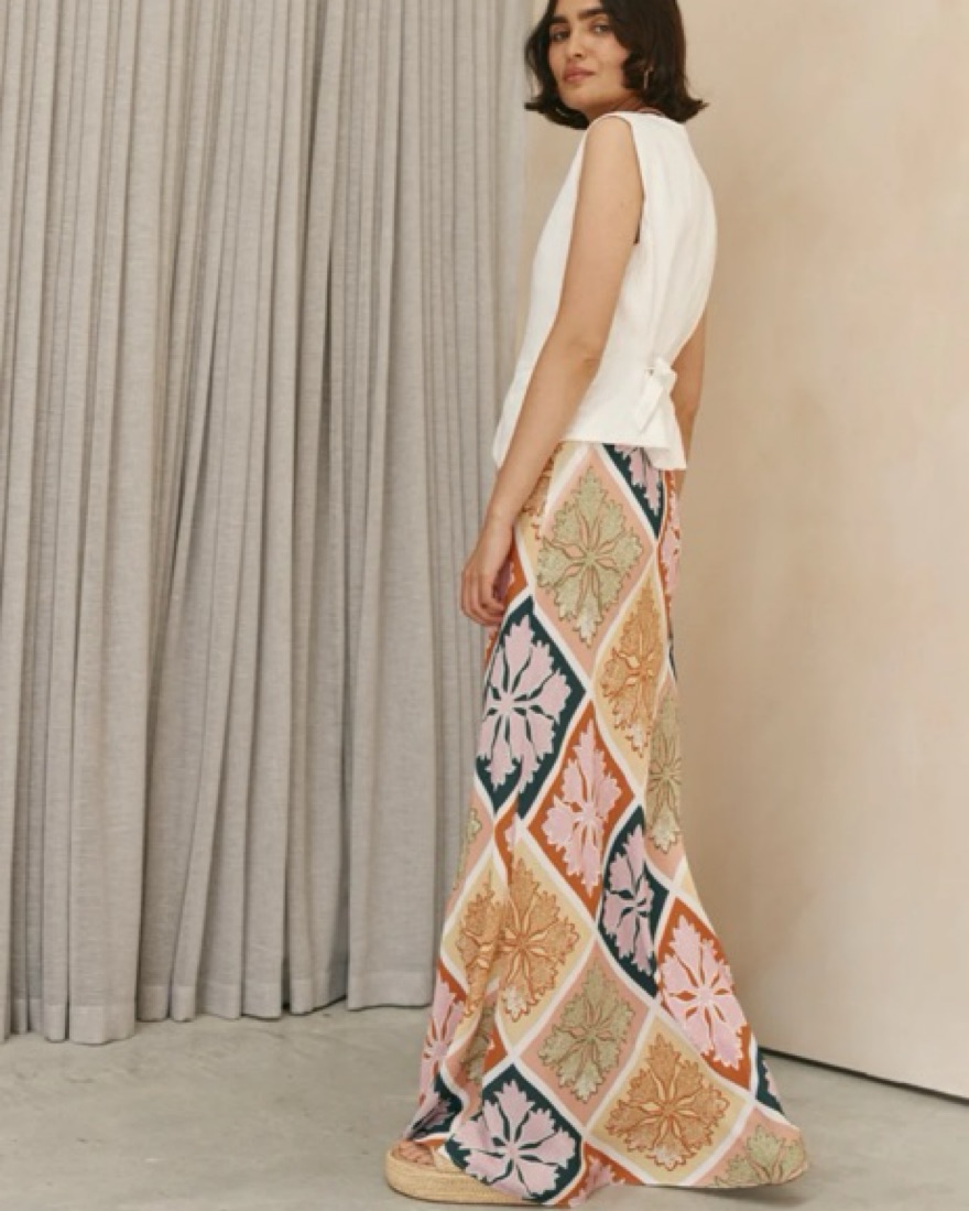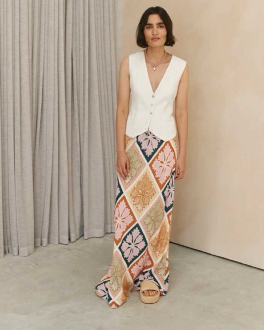 VRG GRL Del Core Maxi Skirt. This skirt features a bias cut, which means this skirt will drape beautifully along your figure, reaching the ideal ankle-grazing length.