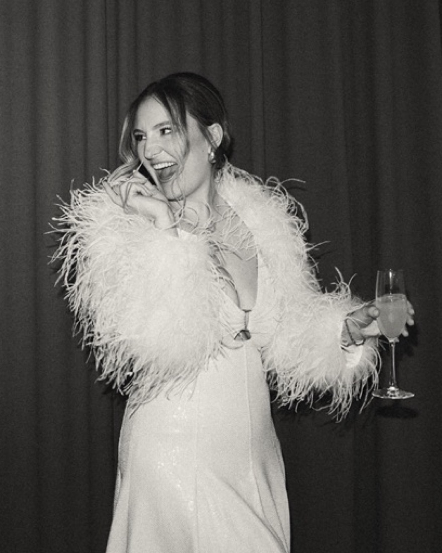 AJE White Sequin Dress + Feather Bolero