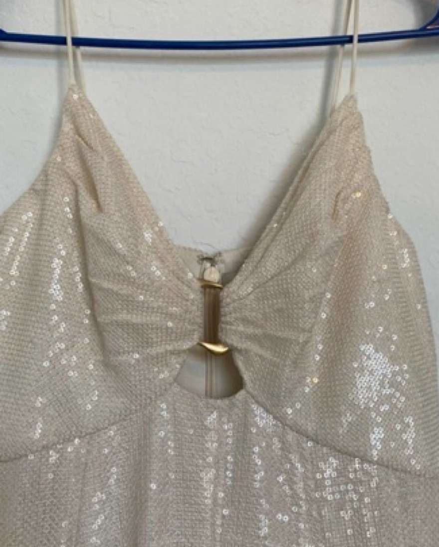 AJE “Idyllic” Strappy Sequin Ivory Dress with Custom Feather Bolero (Cult Gaia inspired). Worn once for my engagement photos, perfect for brides! Dress is size Aus 10 which is USA 6.